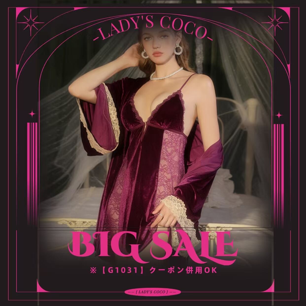 セクシーな魅力を引き立てるレースデザインのルームウェアランジェリー。 深めのVネックとフロントオープン仕様が、女性らしい美しいラインを演出します。 シースルーメッシュ素材のほどよい透け感が、大人の色気と上品な誘惑感をプラス。 リラックスタイムはもちろん、特別な夜にもおすすめの一着です。