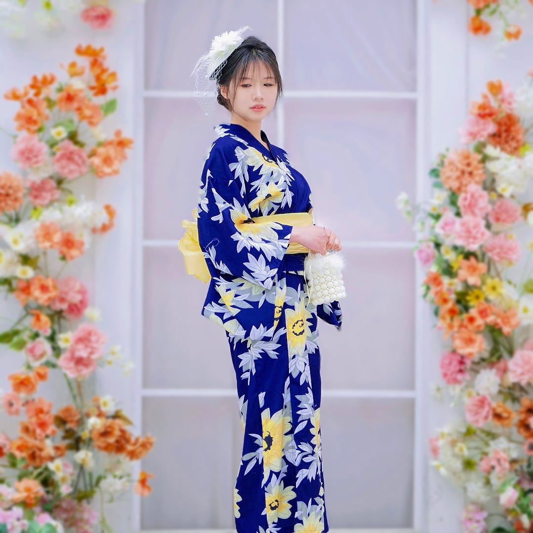 葵柄 浴衣ワンピース 3点セット - 花火大会・夏祭りにもぴったり✨