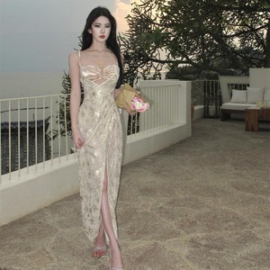 【3点セット】ビキニ水着ロングドレスキラキラサンドレス谷間見せ肌見せセクシー高級感旅行ビキニ WQ7-CD1-E215-65780620