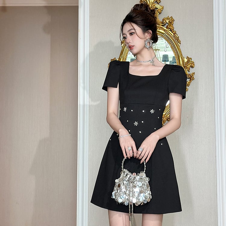 ミニドレス エンベリーワンピース ゴージャス キレイめ Aライン タイト ウエスト絞り ギャザリング 体型カバー 優雅 デート JC2-JY15436