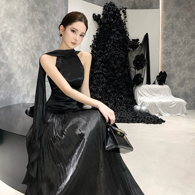 【2色】ロングドレス マキシドレス イブニングドレス セクシー 上品 エレガント ハイネック パーティー レセプション JC2-CD1-119-99610780