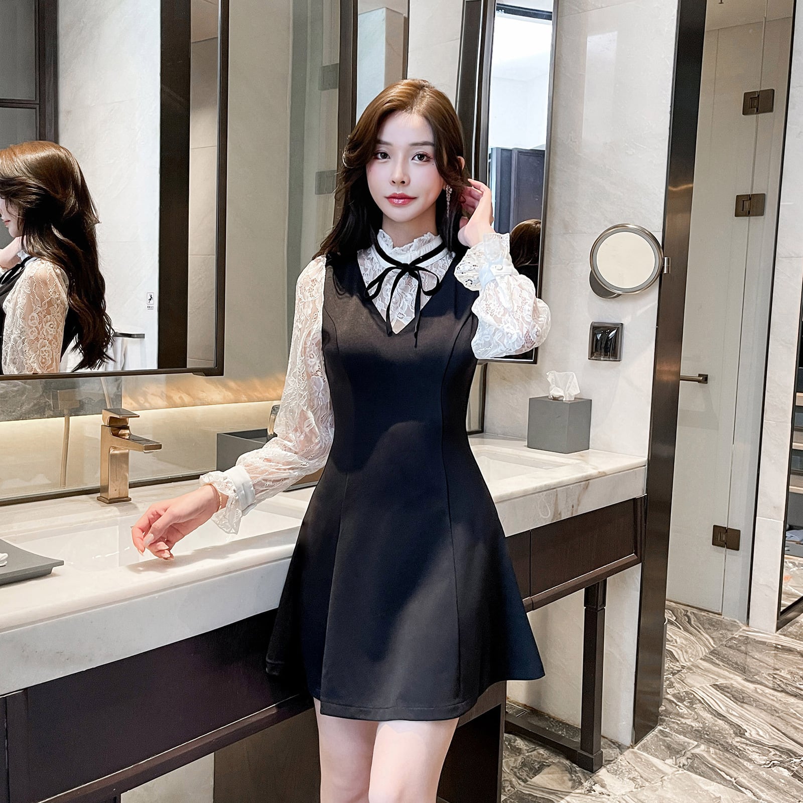ミニドレス キャバドレス セクシー ハイネック レース切替 Aライン お腹カバー タイトシルエット パーティー デート 女子会 結婚式のお呼ばれ JC2-YM8865