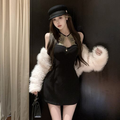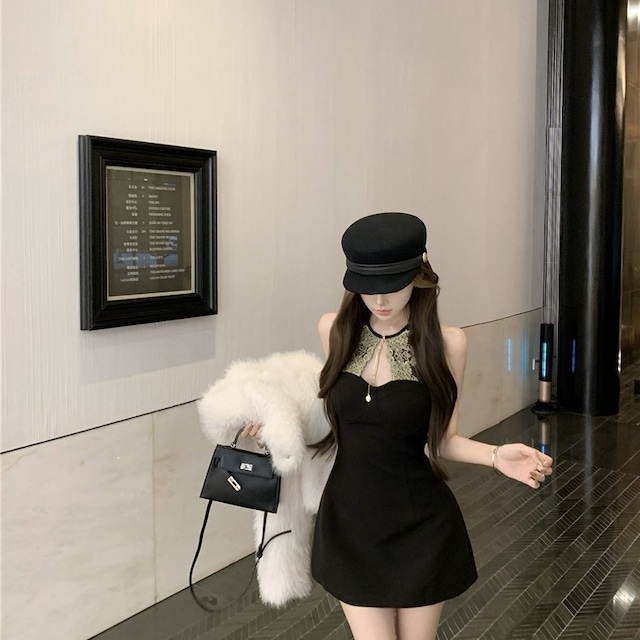 ミニドレス キャバドレス セクシー ホルターネック フレンチシック 着痩せ パーティー クラブ JC2-XKDD310-3302-Sep8