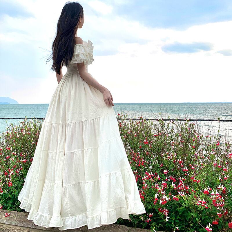 【2色】ロングドレス セクシー フェミニン 華やか フリルオフショルダー ウエストシェイプ 大きなフレアスカート 上品シルエット パーティー JC2-CD1-119-99260700