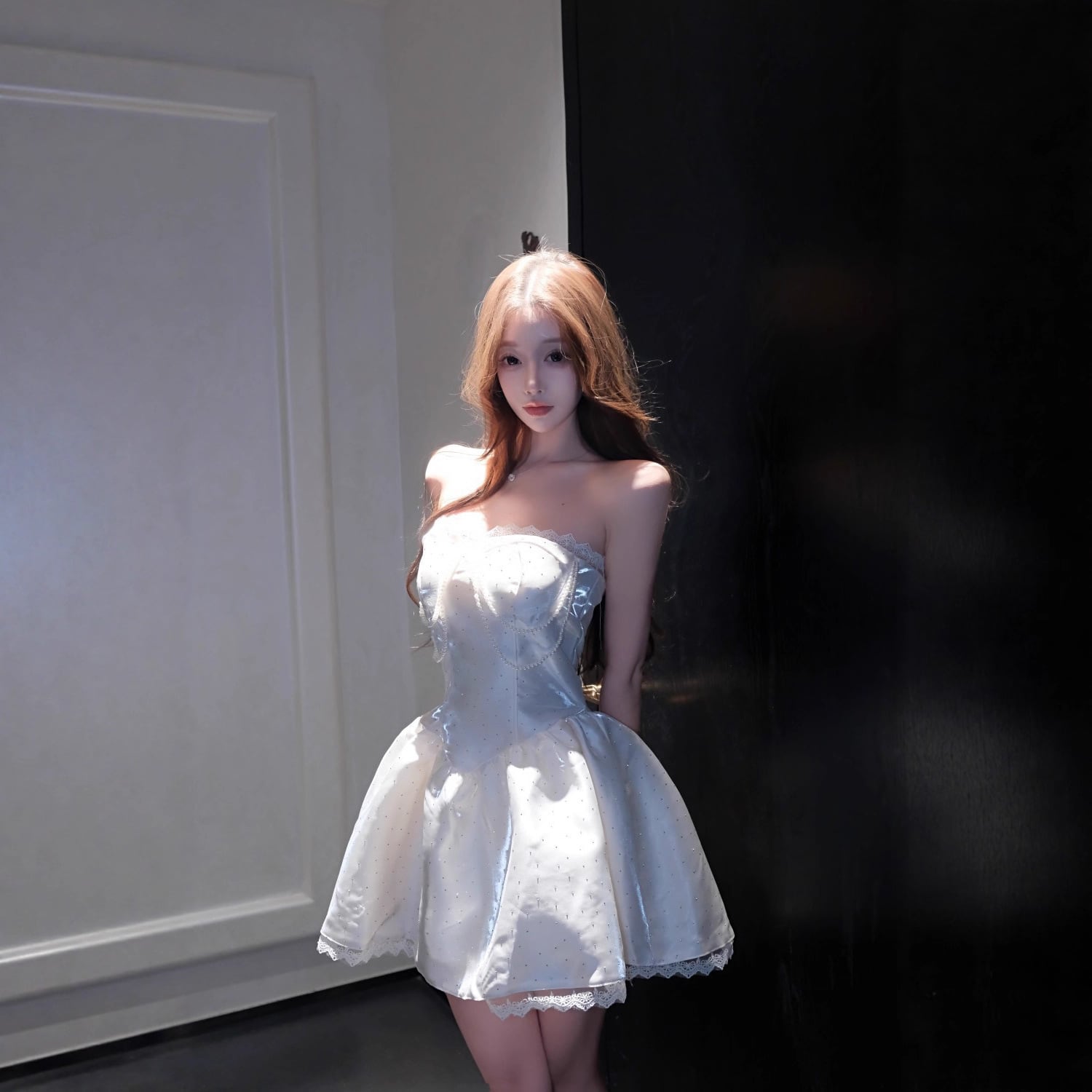 ミニドレス キャバドレス セクシー エレガント ビスチェ風 フレンチ風 パフスカート ウエストマーク 高見え レース×パール装飾 パーティー JC2-DD5746