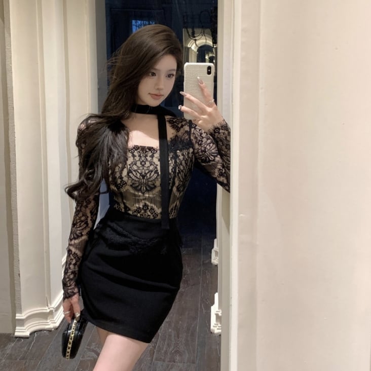 ミニドレス キャバドレス セクシー ブラックレース 長袖 上品 大人っぽい ボディコン クラブ 指名 JC2-XKDD529-5917-Sep23 Lady's coco