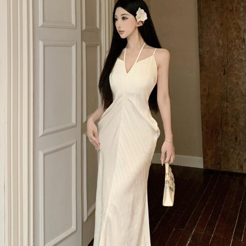 Lady's coco ロングドレス キャバドレス セクシー サテン Vネック ストラップ おしゃれ きれいめ お腹カバー JC2-CD7-349-5560720