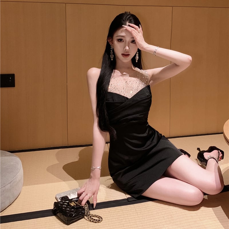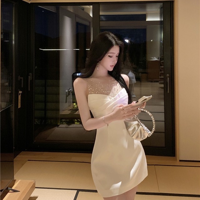 【2色】Lady's coco ミニドレス キャバドレス エレガント フレンチ メッシュ ビジューデザイン ノースリーブ ボディコン JC2-XKDD310-3393-Oct10