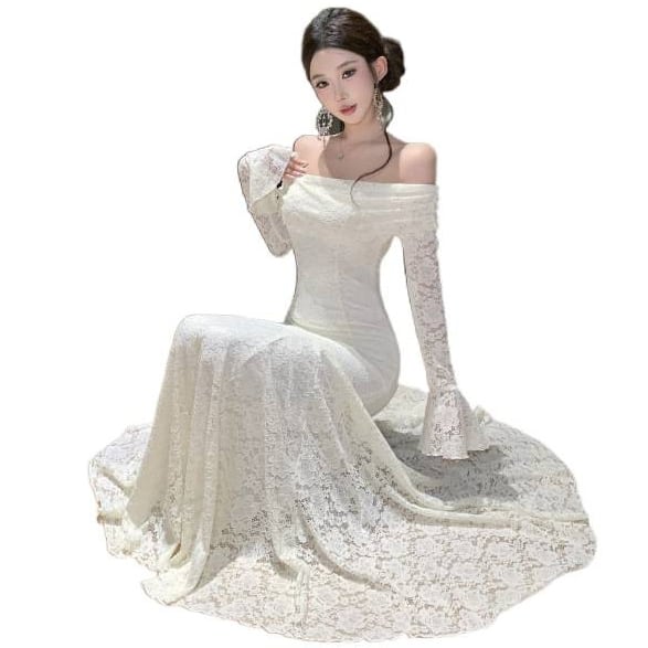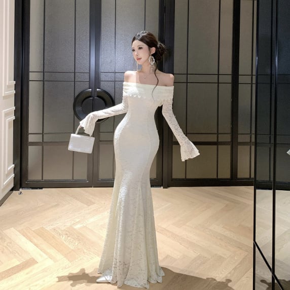 Lady's coco ロングドレス キャバドレス フレンチスタイル オフショルダー レースドレス タイト ウエストマーク 上品 セクシー 秋冬新作 LW2-CD7-238-87130600