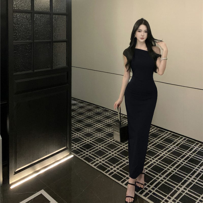 【秋新作】ロングドレス キャバドレス フレンチエレガント ワンショルダー ウエストマーク タイト シルエット 美ライン 着痩せ セクシー 大人フェミニン LW2-CD2-751-62250500