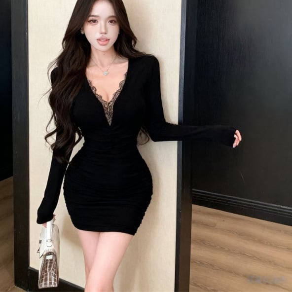 【2色】 ミニドレス キャバドレス セクシー ナイトドレス ミニ丈 タイトワンピース オフショル Vネック LW2-XKDD342-8187-Oct18