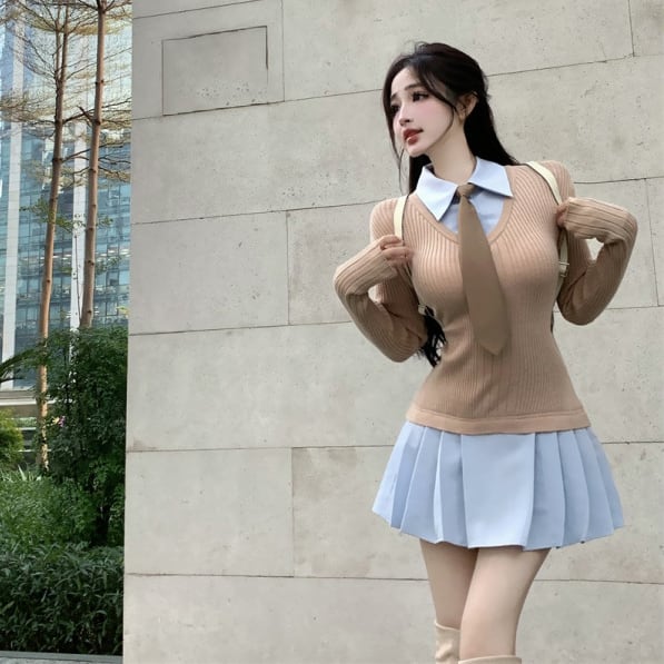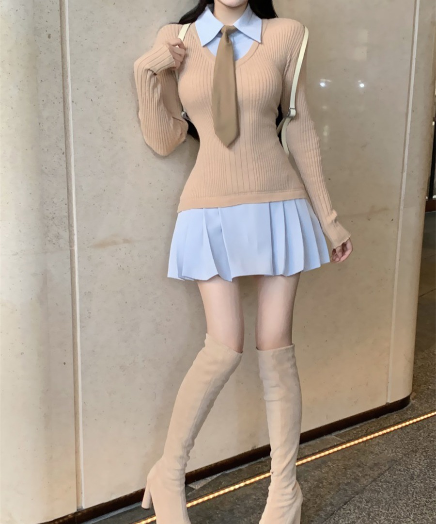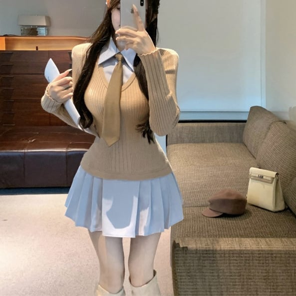 【秋新作】ミニドレス キャバドレス プレッピースタイル ウエストマーク プリーツスカート 大人可愛い デート LW2-XKDD335A-3139-Sep21