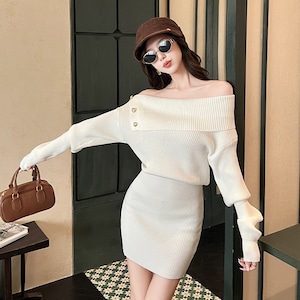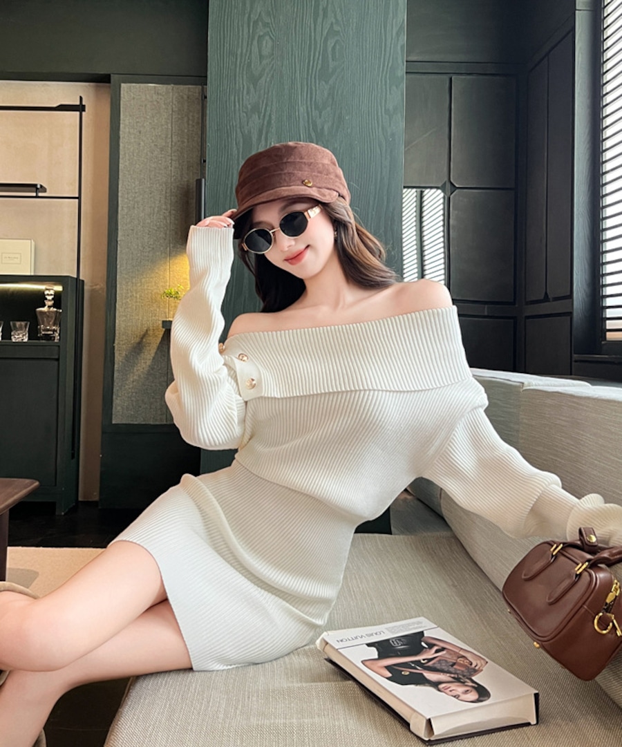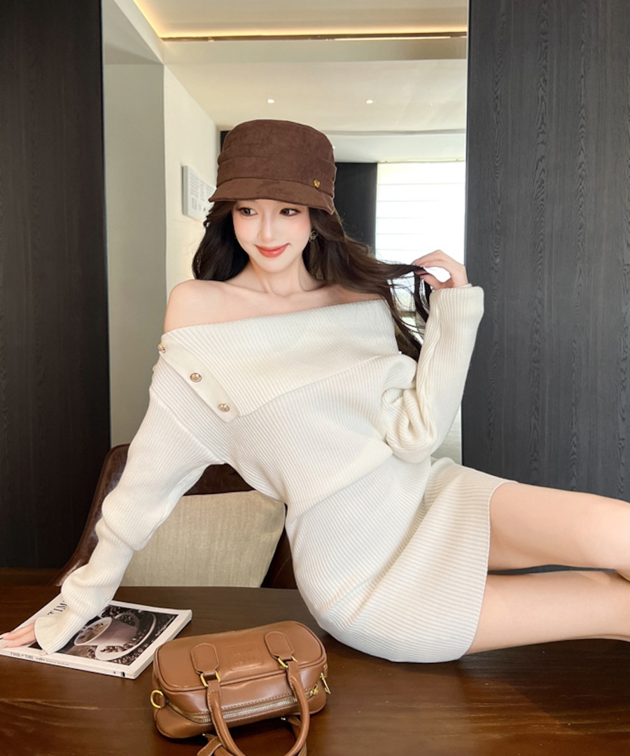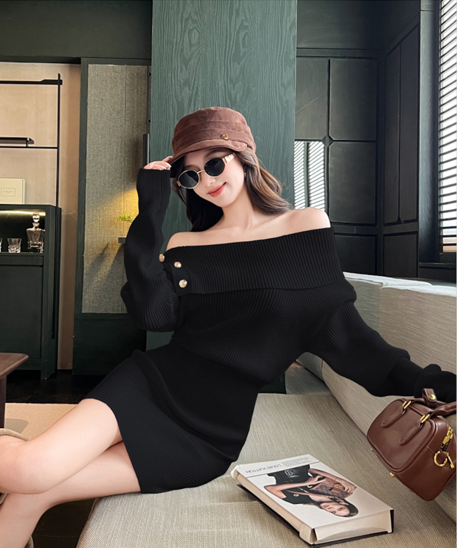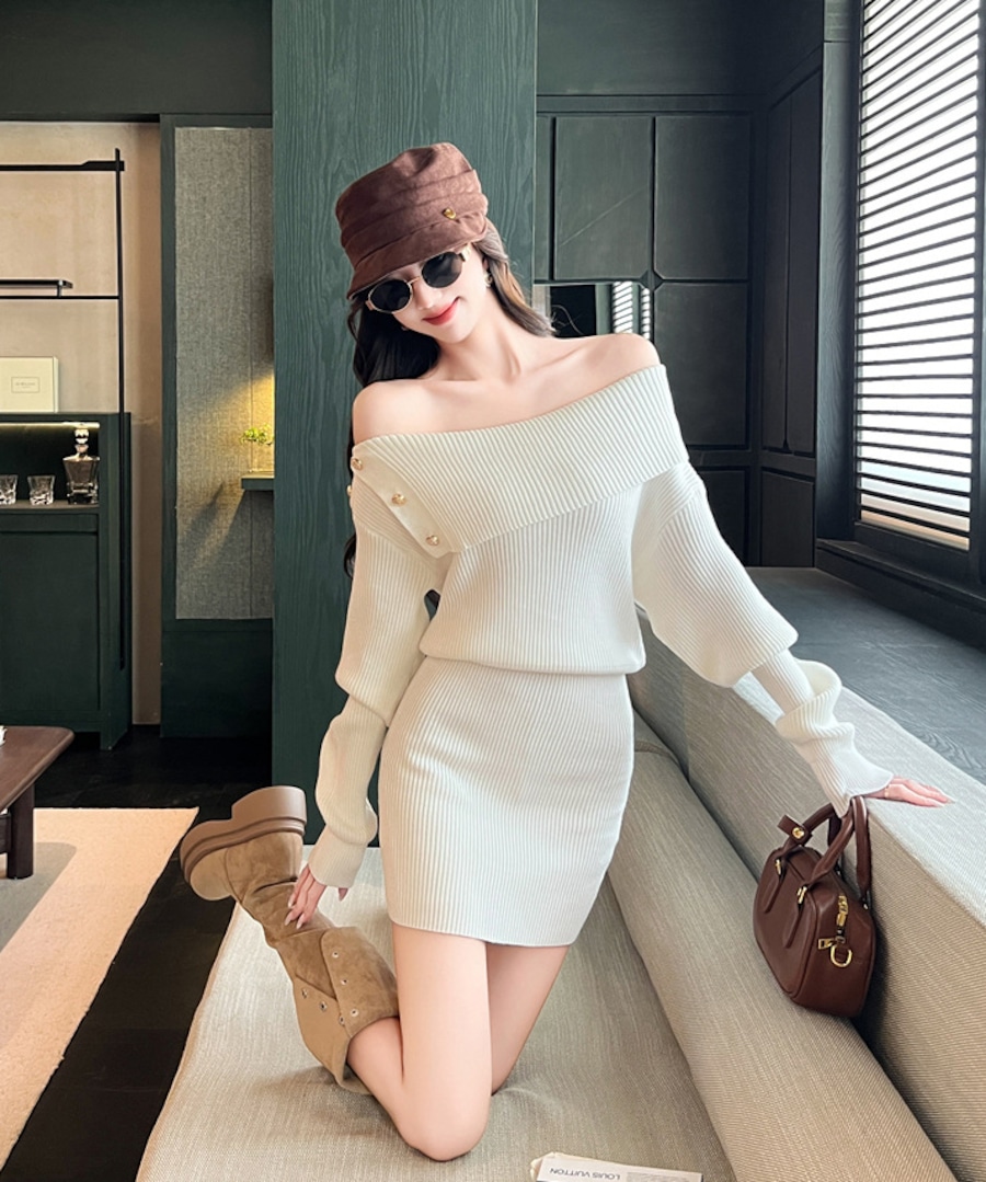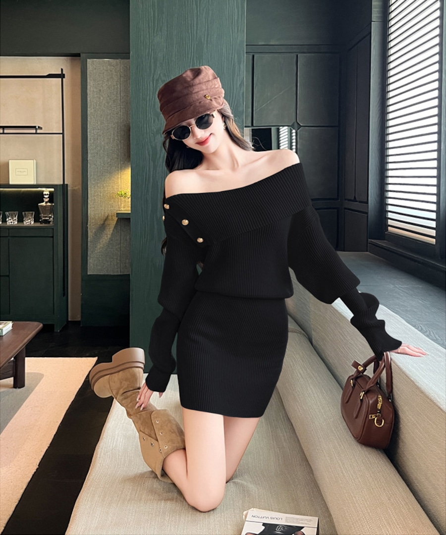 【3色】 ミニドレス キャバドレス セクシー ニットワンピース オフショルダー タイトフィット ペンシルスカート風 シックスタイル LW2-ZED883252GT510B