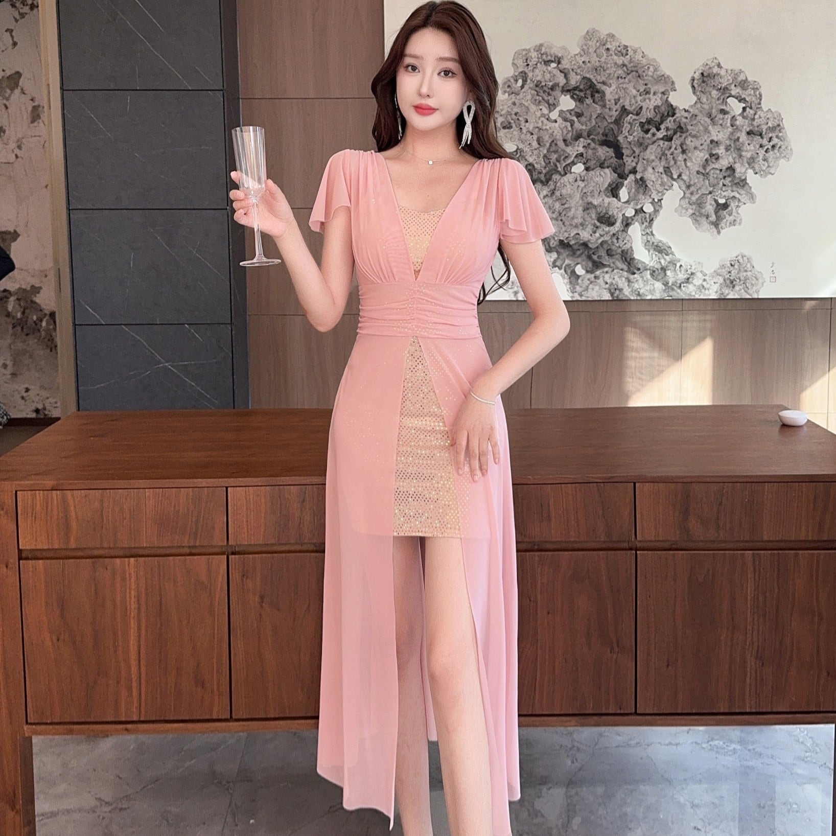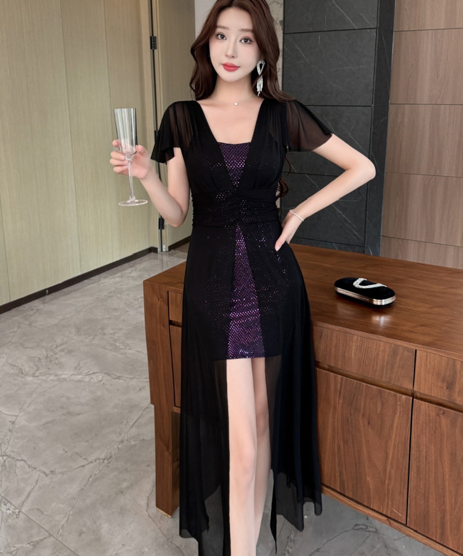 【3色】Lady's coco ロングドレス キャバドレス セクシー シースルー タイトワンピース ロング丈 大人可愛い LW2-DD5833