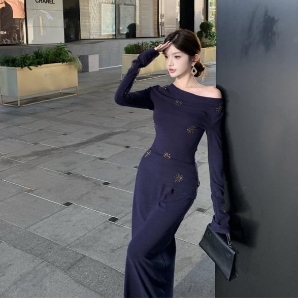 【2点セット】 ロングドレス キャバドレス セクシー セットアップ フレンチスタイル ドレープネック 上品 スリムフィット ミディスカート LW2-ZED883415DXH502