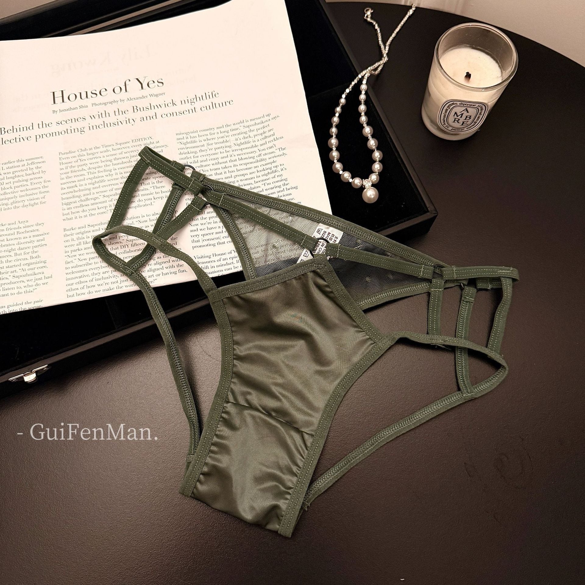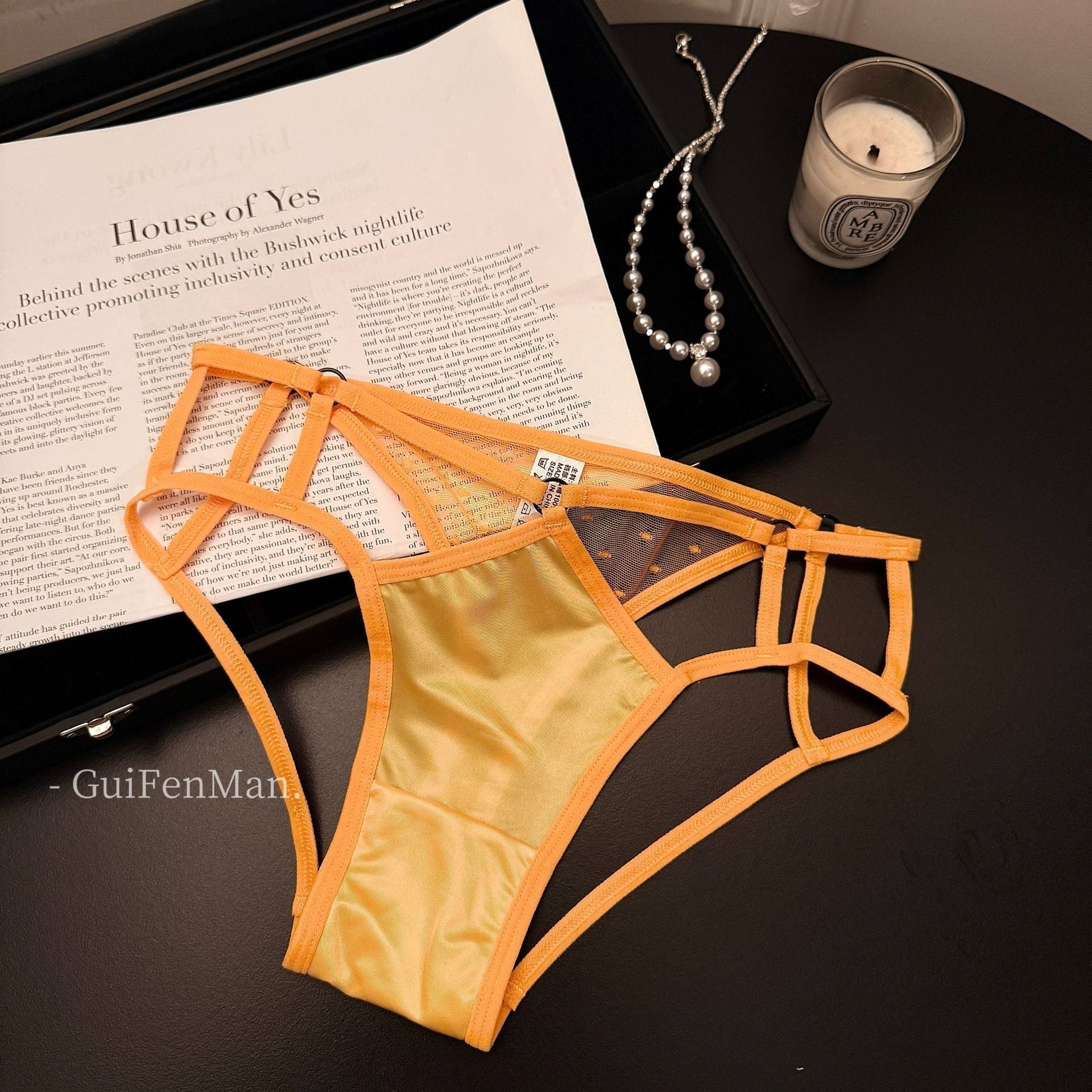 下着 サテンレース ショーツ 透け感 細ストラップ セクシー 三角ショーツ 綿100%のクロッチャー付き LW2-RS61-70d