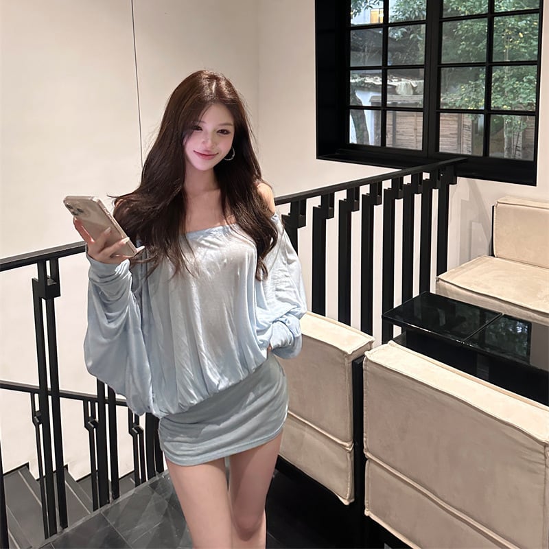 Lady's coco ミニドレス キャバドレス セクシー オフショルダー 背中あき 長袖タイト ウエストマーク 細見え デート LW2-CD5-109-85010450