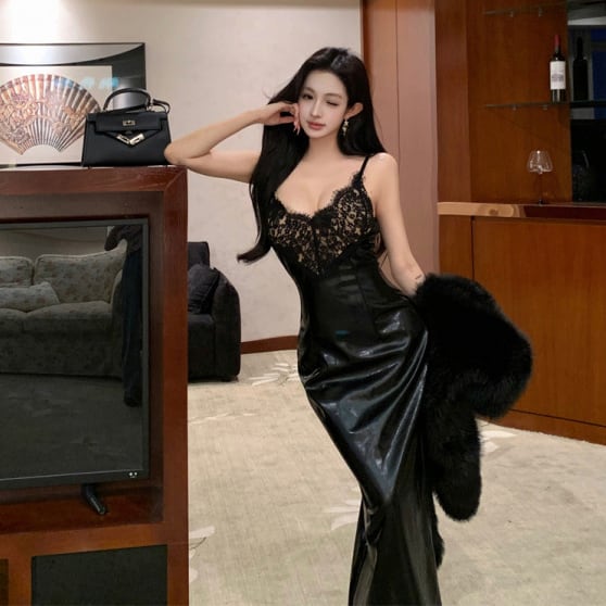 Lady's coco ロングドレス キャバドレス セクシー レースキャミワンピース ミックス 上品 シルエット インナー デート コーデ LW2-ZED883420DXH502