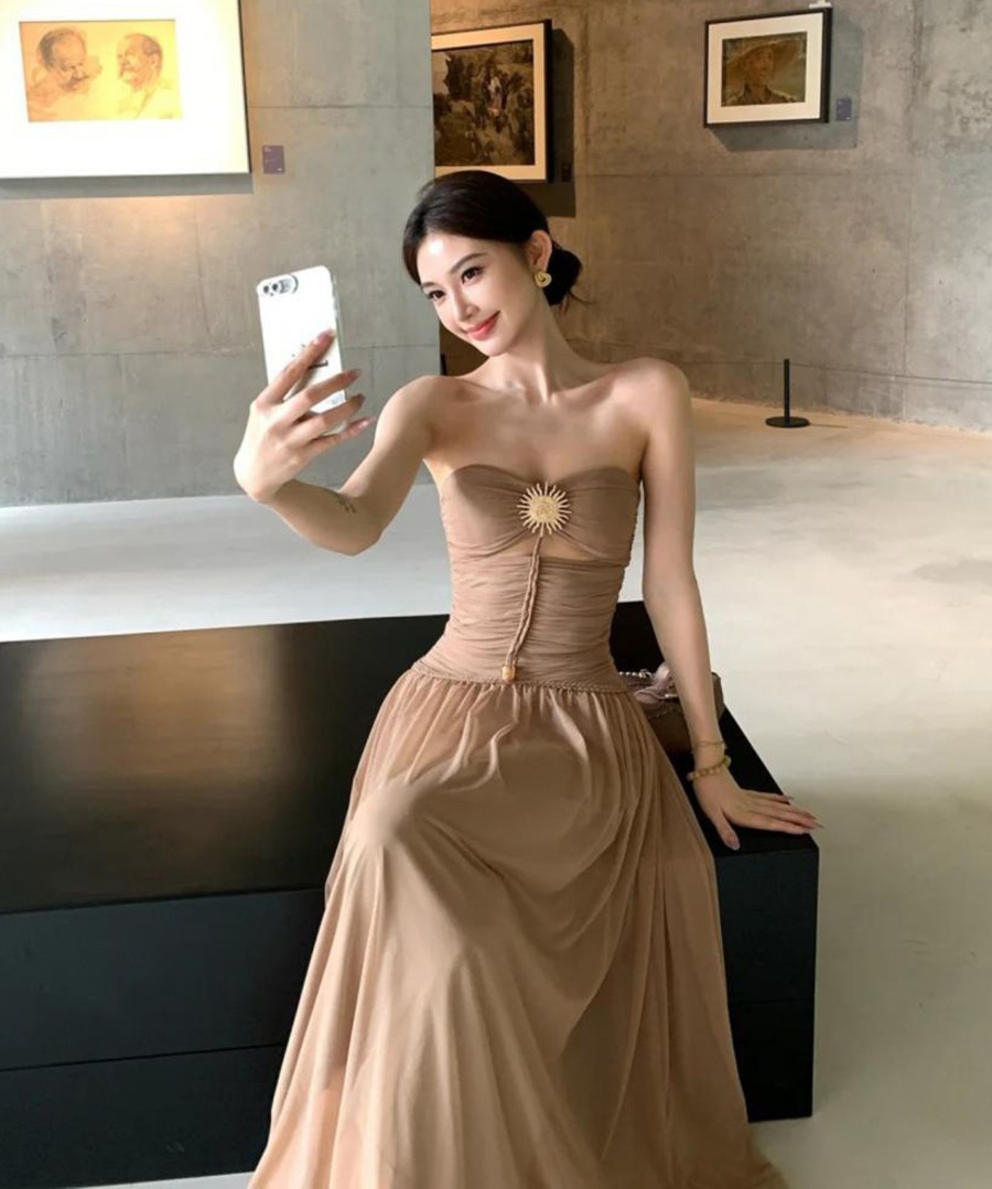 【2色】 ロングドレス キャバドレス セクシー チューブトップワンピース リボンデザイン カットアウト ウエストマーク 大人可愛い LW2-XHY918382