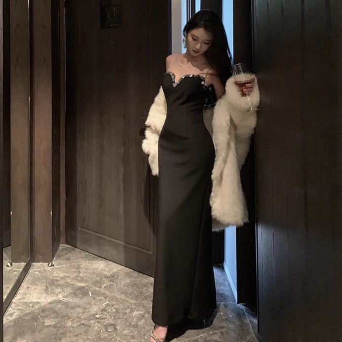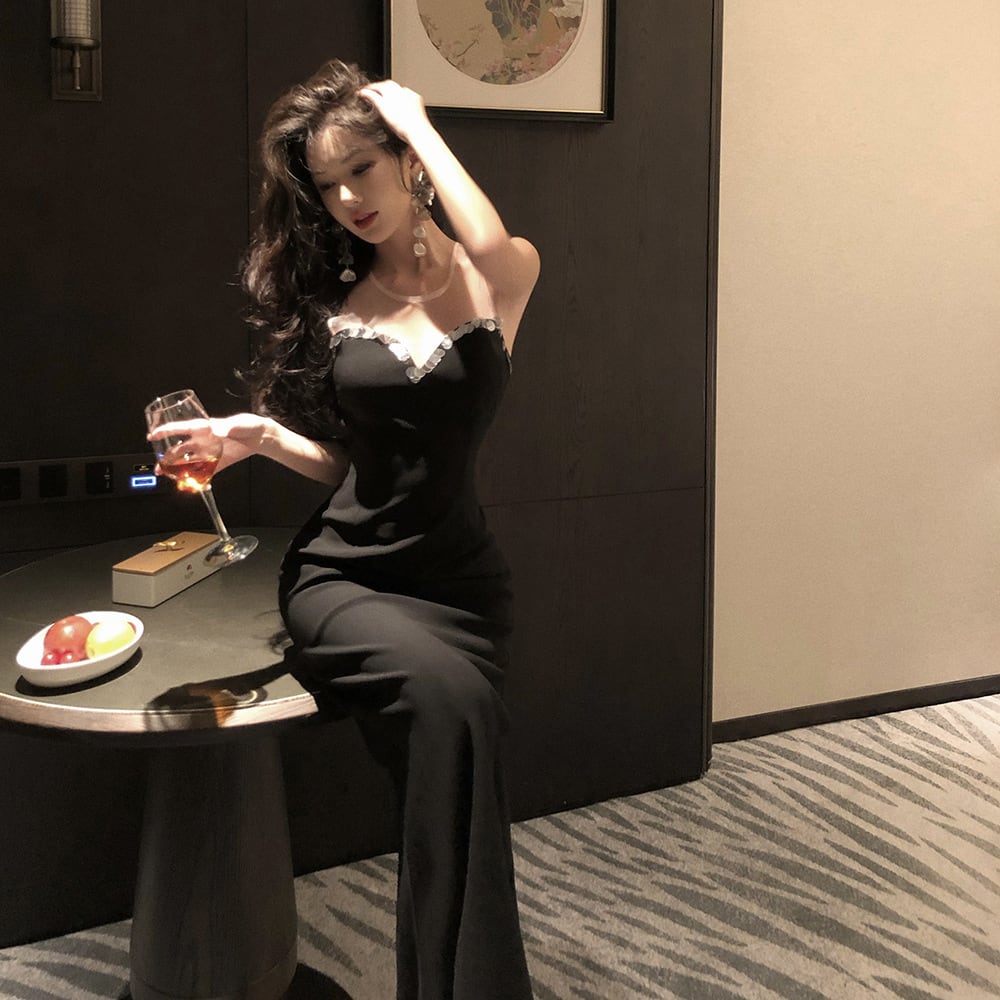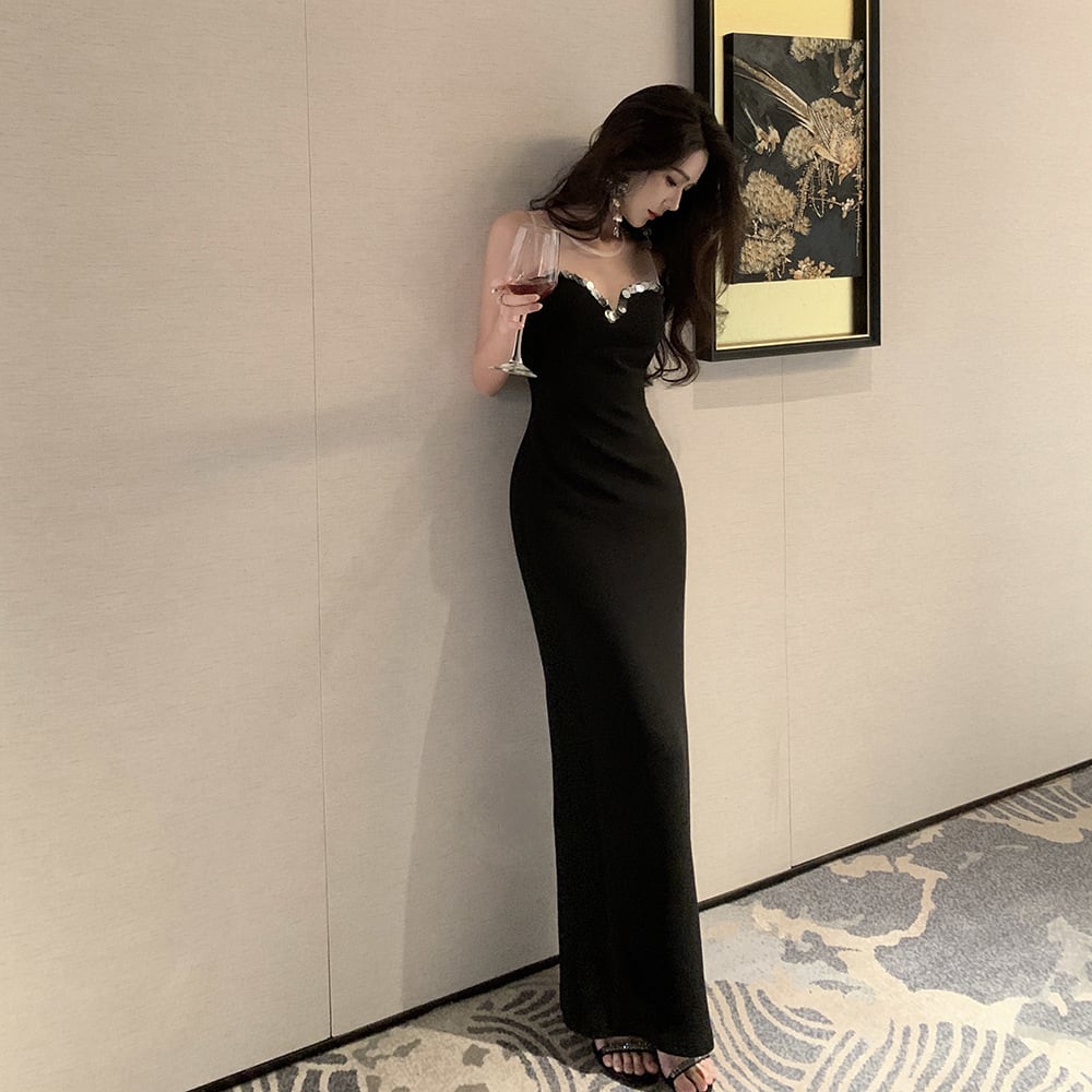 Lady's coco ロングドレス キャバドレス セクシー ライトラグジュアリー スパンコール メッシュ パーティー LW2-HYL11041