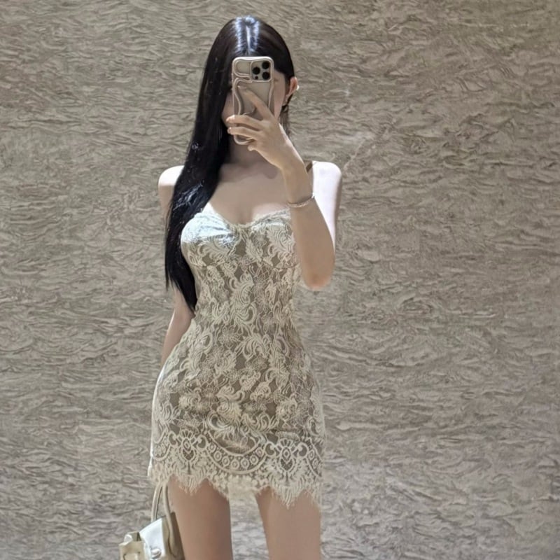 Lady's coco ミニドレス キャバドレス セクシー レース Vネック キャミワンピ タイト セクシー フェミニン LW2-ZED882649DXH437A