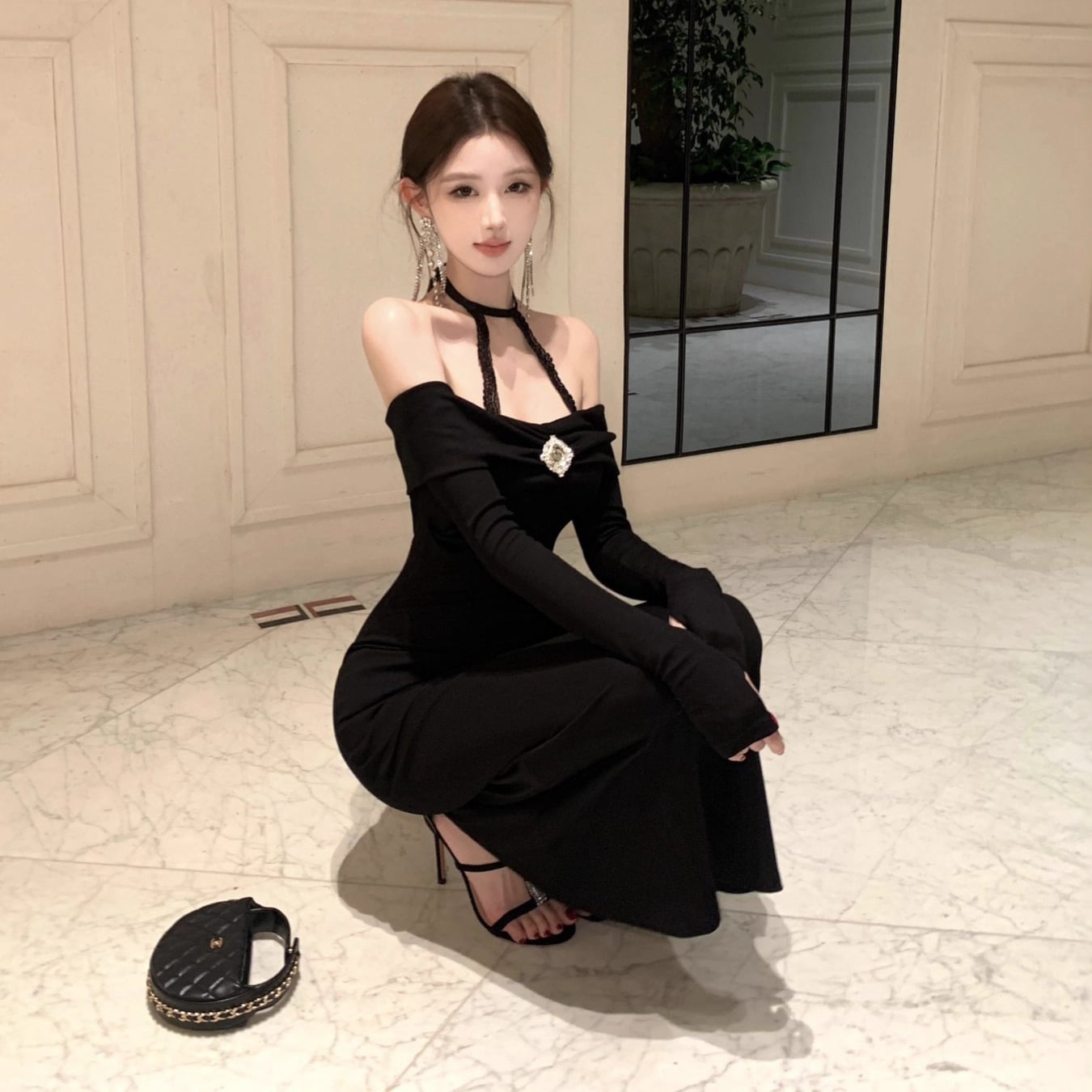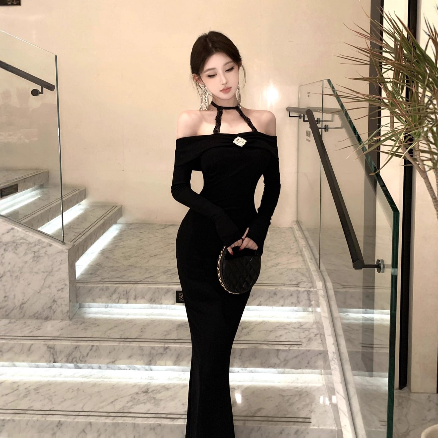 Lady's coco ロングドレス キャバドレス セクシー オフショルダー タイトワンピース ホルターネック 背中開き ボディコン デート 女子会 二次会 披露宴 パーティー LW2-OYF8723