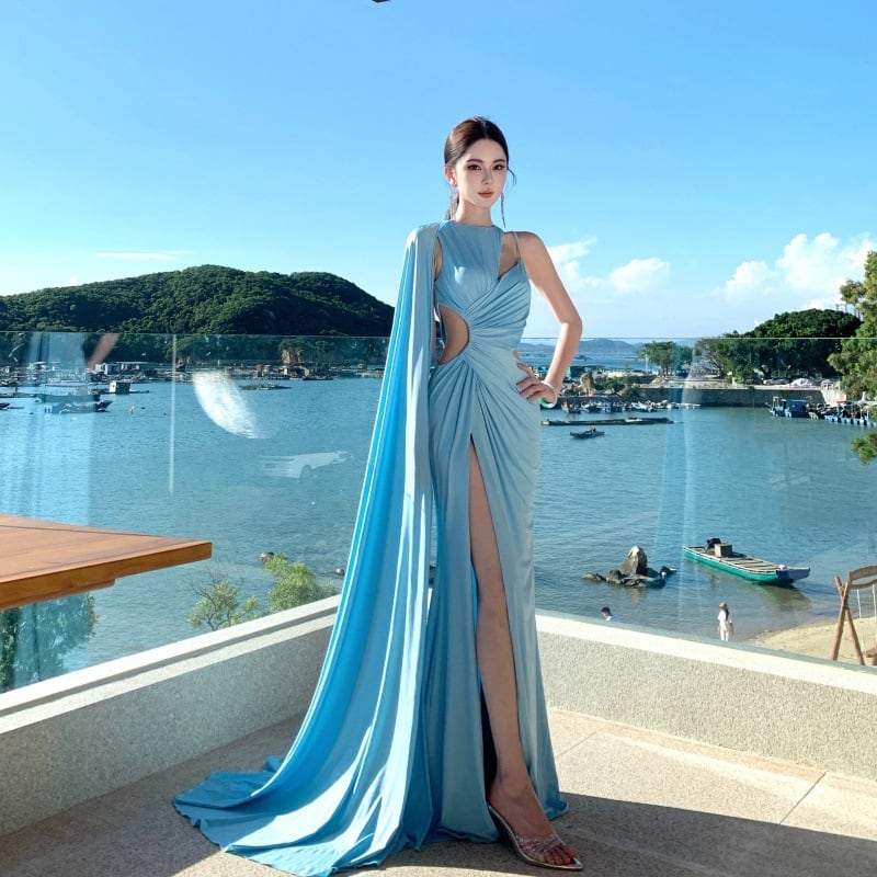Lady's coco ロングドレス キャバドレス セクシー 肌見せデザイン カットアウト ウエスト ハイスリット ドレープ ライトブルー パーティー バースデー イベント JC2-XHY918251