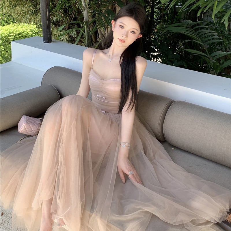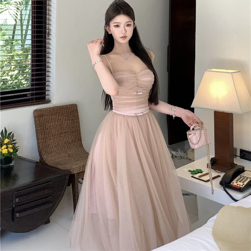 Lady's coco ロングドレス キャバドレス セクシー チュール切り替え リボンキャミワンピ ウエストマーク フレアシルエット JC2-CD1-119-97380720