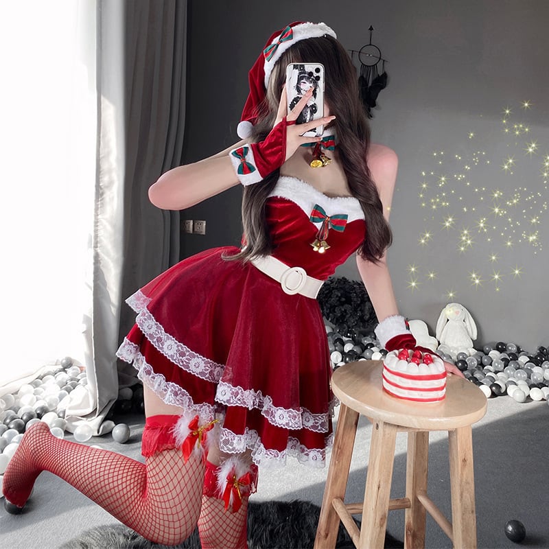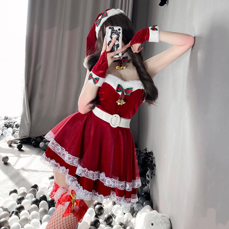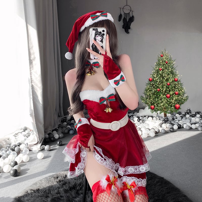 【3点セット】ミニドレス クリスマ 大人可愛い セクシー サンタ服 コスプレ チューブトップ ポップ JC2-DML31