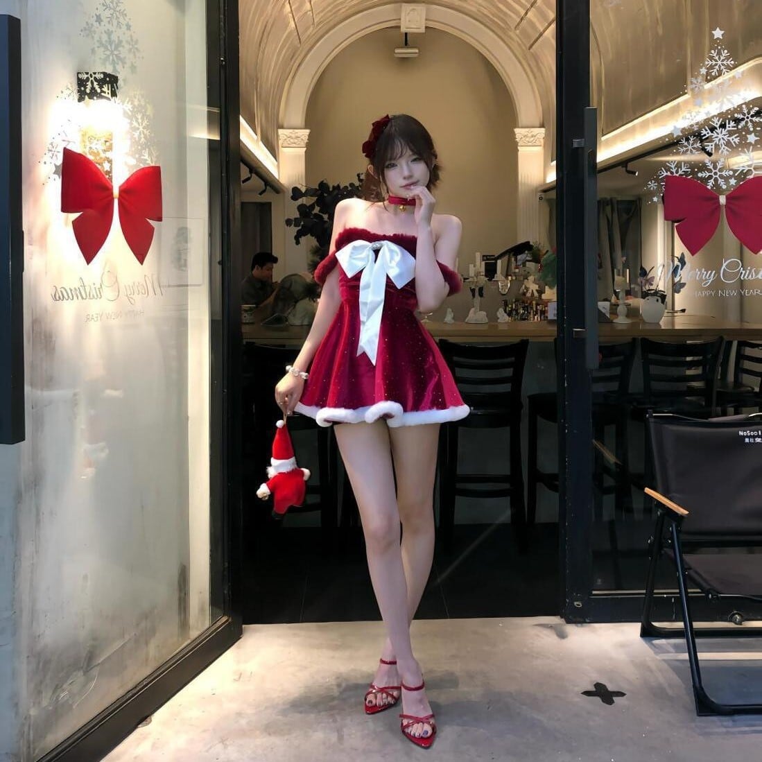 【3点セット】クリスマス 大人可愛い セクシー ビッグリボン チューブトップ レッド キラキラ ボリューム クリスマスパーティー JC2-DML73