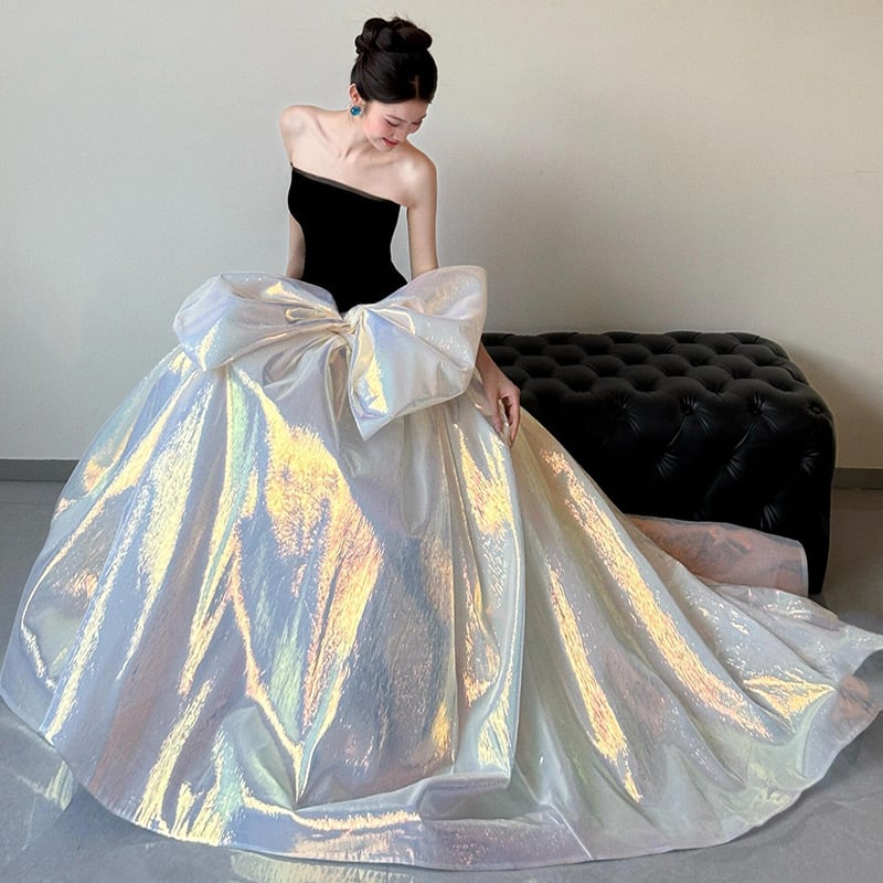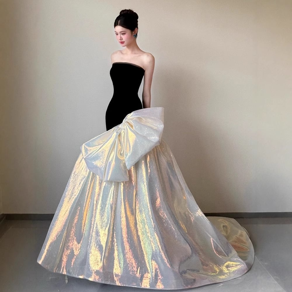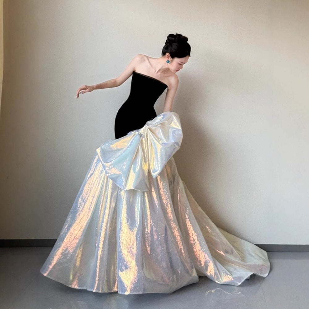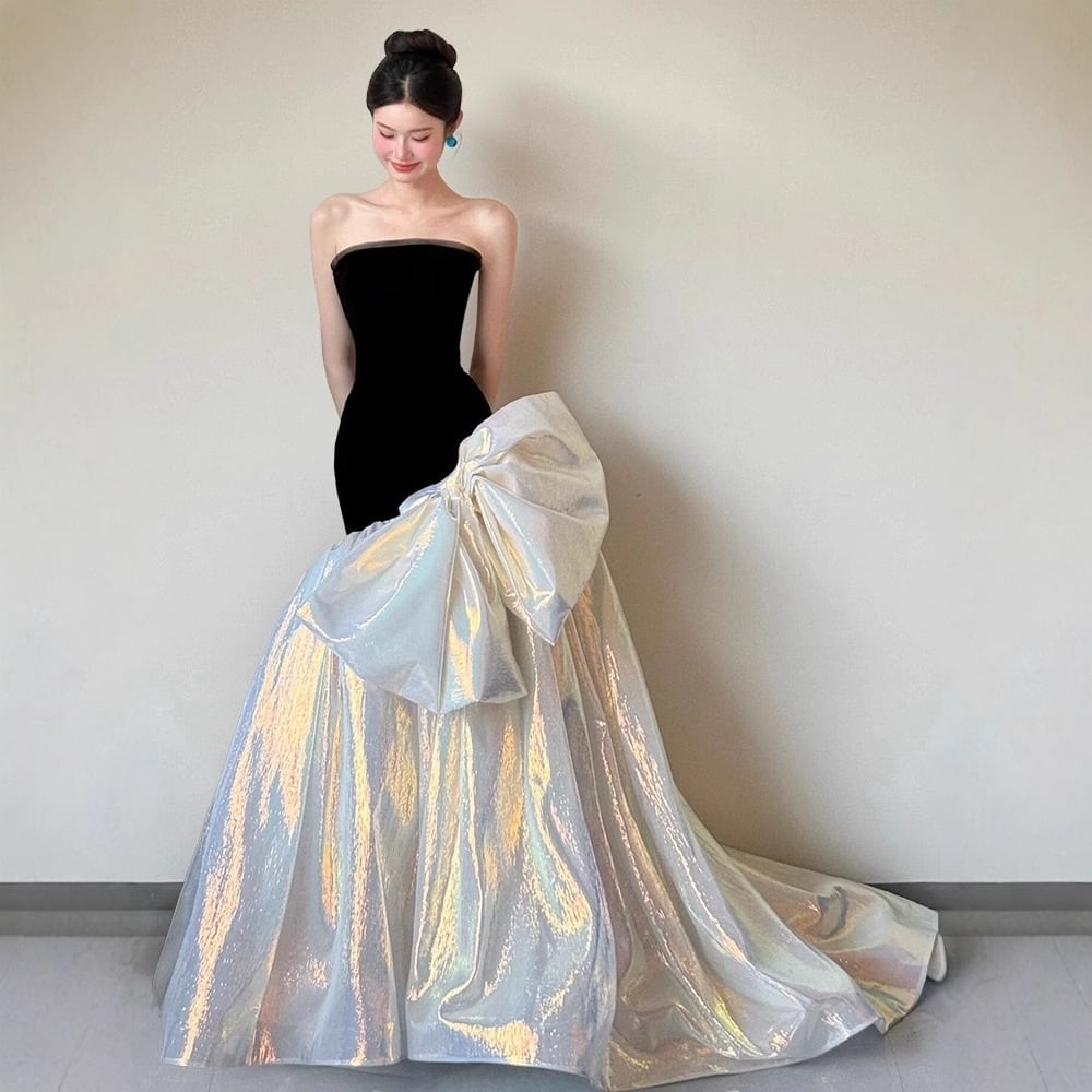ロングドレス キャバドレス パーティードレス フレンチ風 ベアトップ マーメイド イブニングドレス リボン トレーン プリンセス 成人式 誕生日 JC2-JZ259