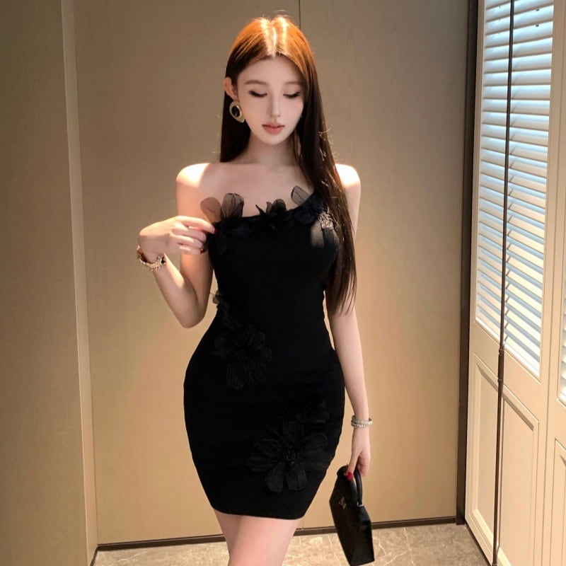 【2色】ミニドレス キャバドレス セクシー 上品 アシンメトリーショルダー おしゃれ タイト ペンシルスカート 立体フラワー JC2-ZED882685DXH437A