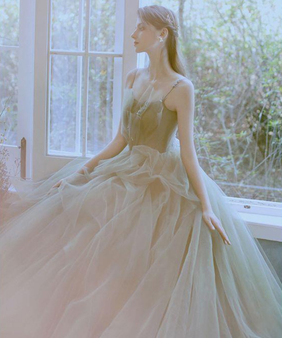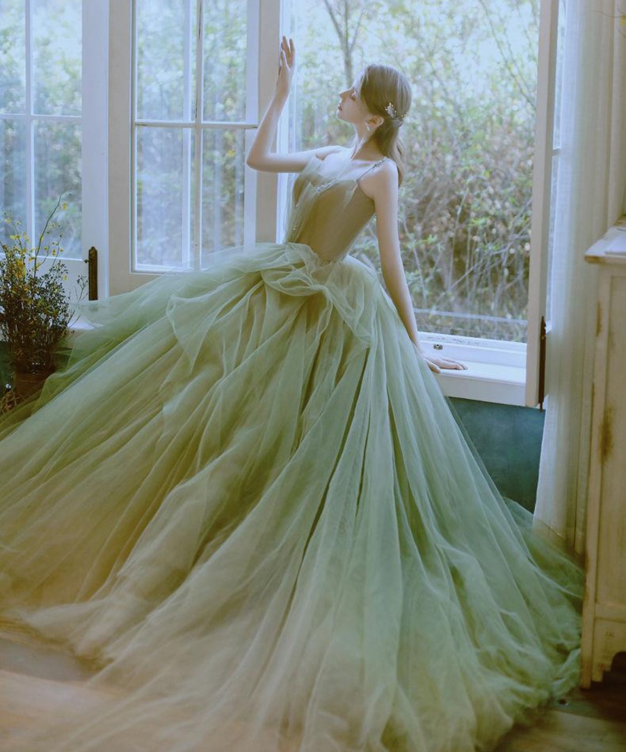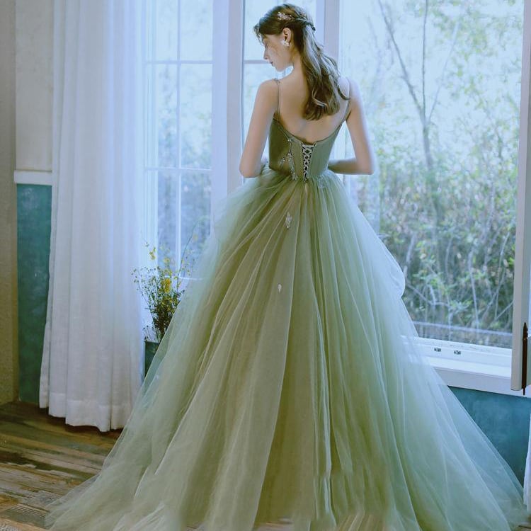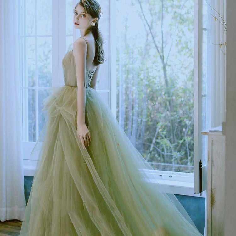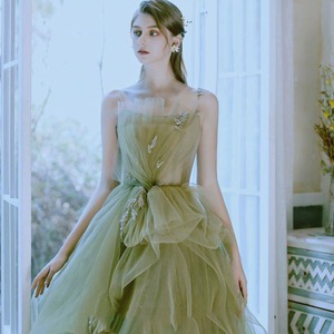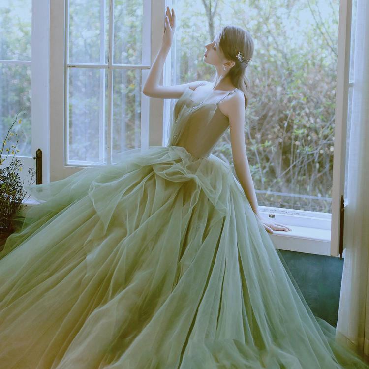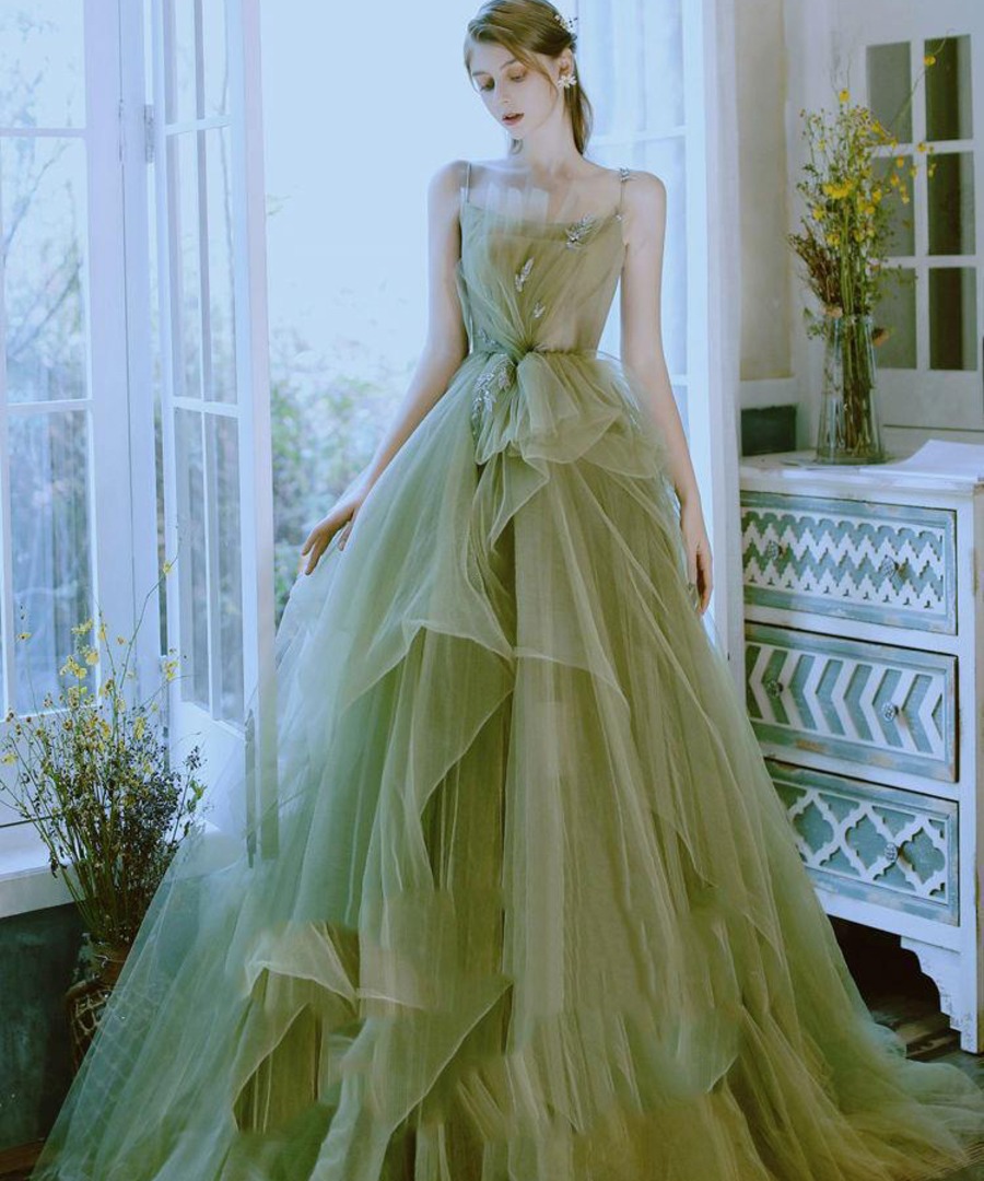 ロングドレス キャバドレス パーティードレス グリーン ドレープ チュール キャミソール ビジュー付き バースデー パーティー JC2-JZ816