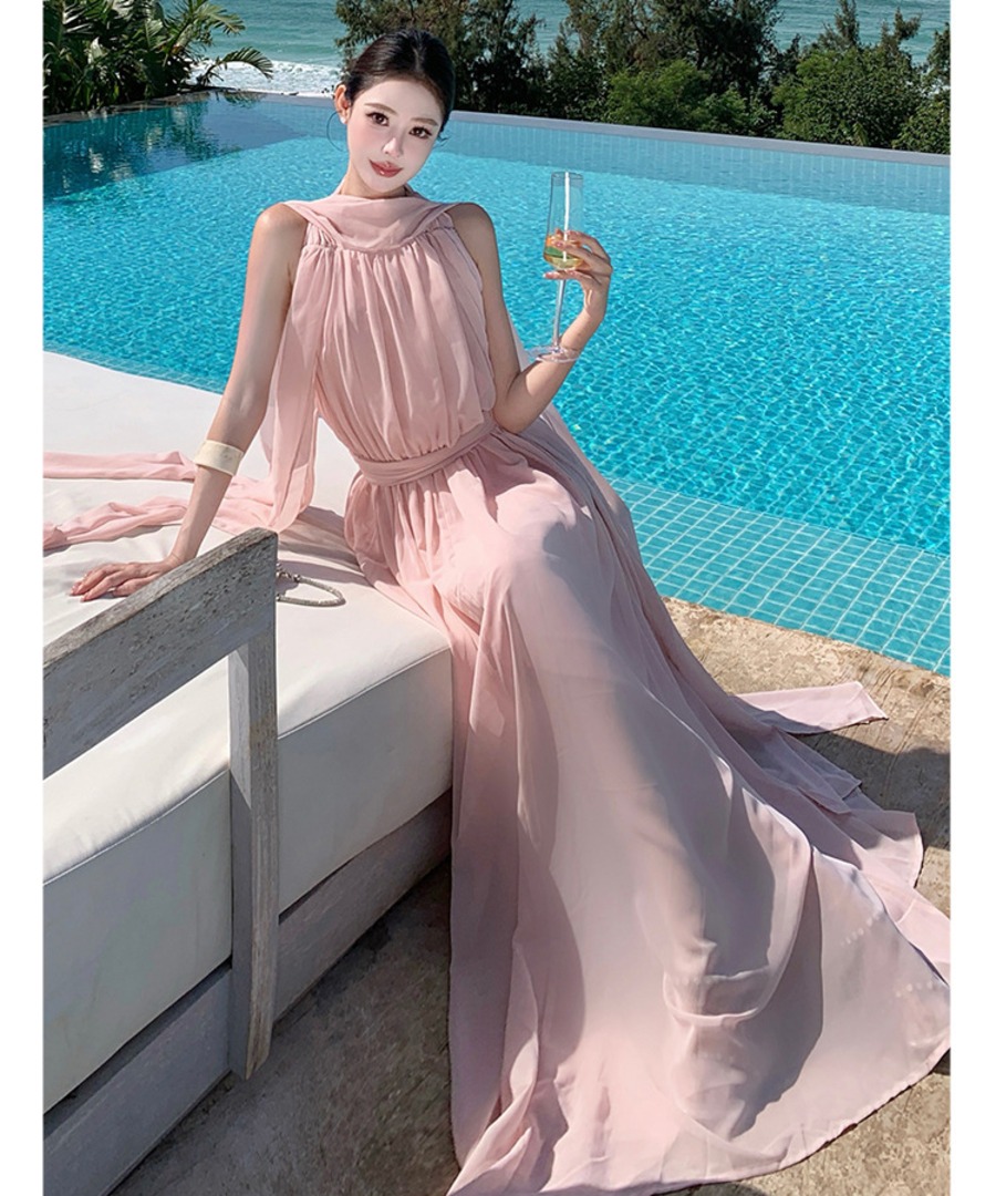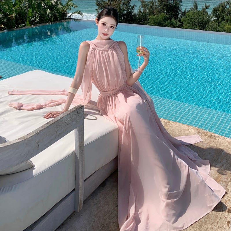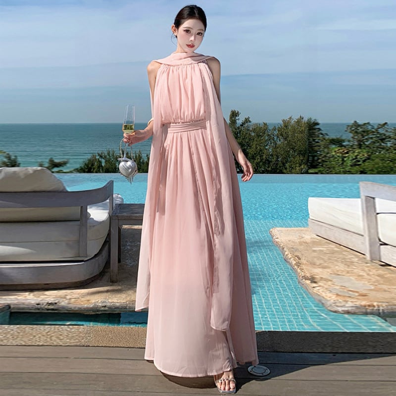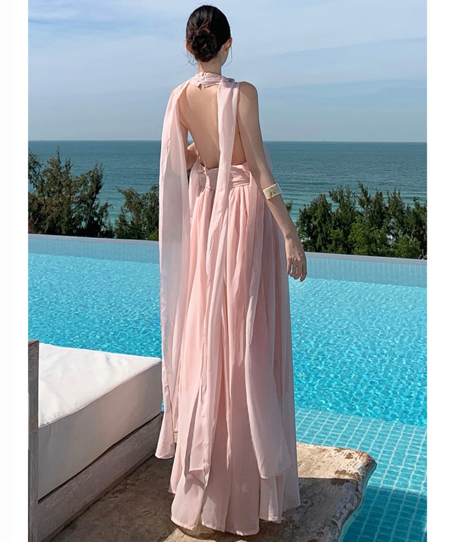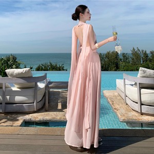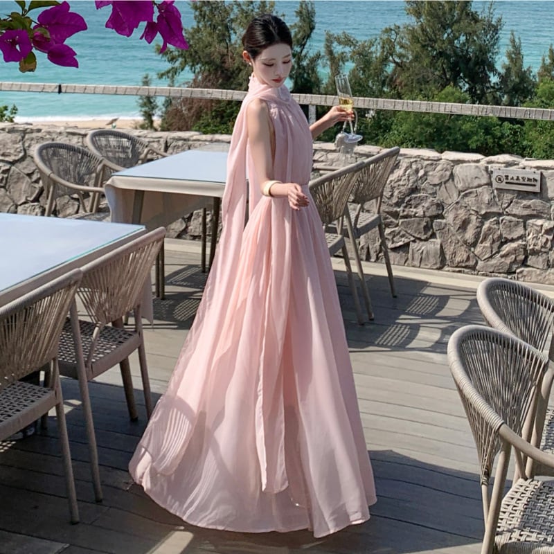 ロングドレス キャバドレス セクシー ノースリーブ バックレス 細見え 上品 フェミニン ドレープ フロントリボン デート パーティー JC2-CD6-CF12-52380720