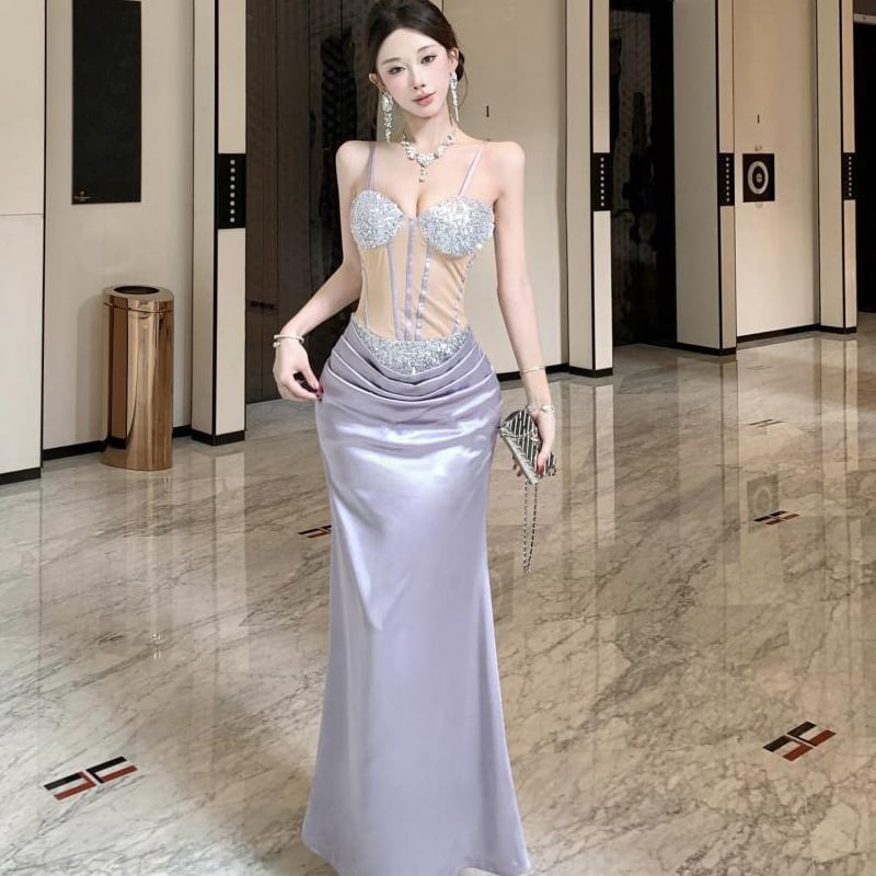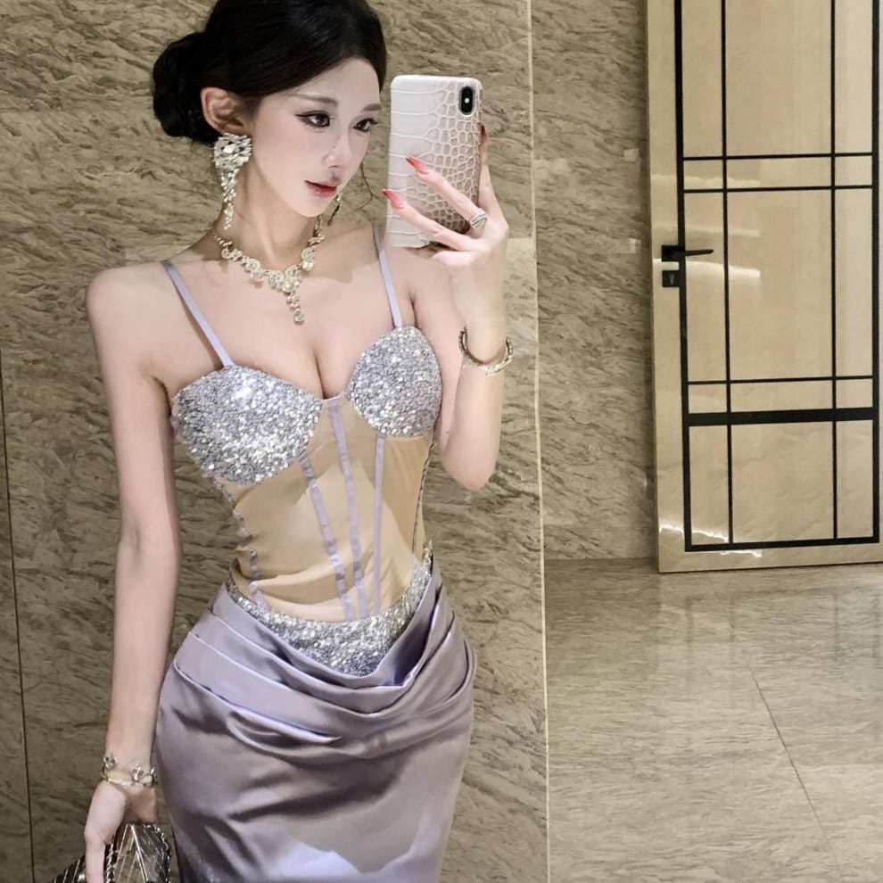 ロングドレス キャバドレス セクシー 上品 コルセット風 キャミワンピ 色っぽい ギャザー ウエストマーク タイトシルエット パーティー JC2-CD7-238-87520750