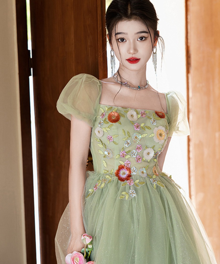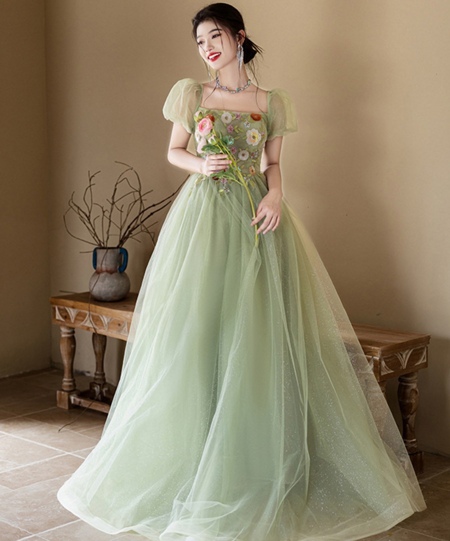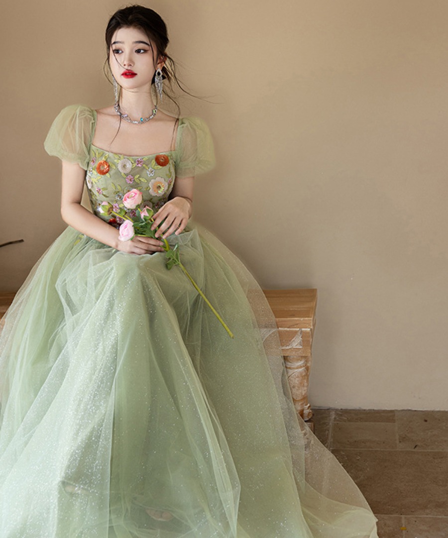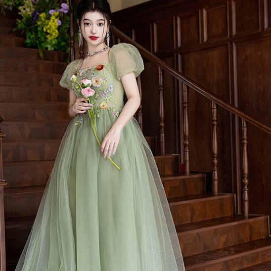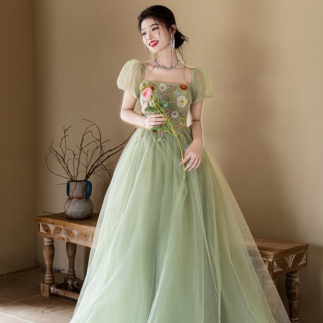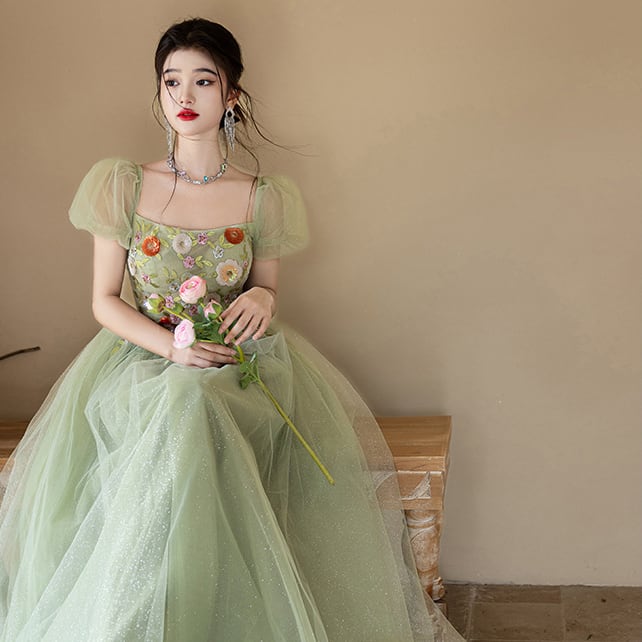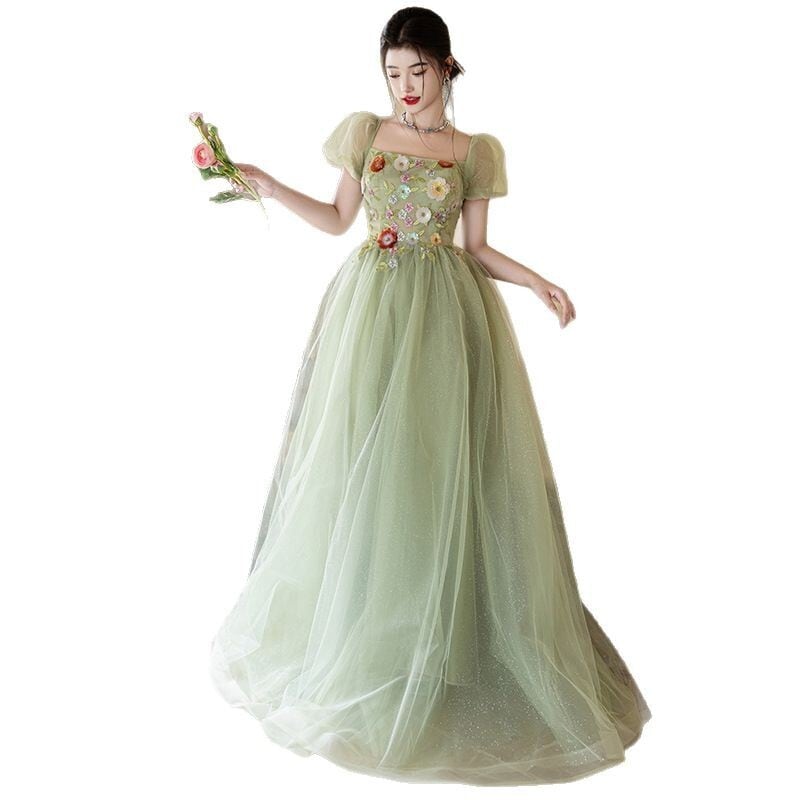 ロングドレス キャバドレス パーティードレス エレガント ミントグリーン スクエアネック 森ガール風 写真撮影 パーティー バースデー JC2-ZF84