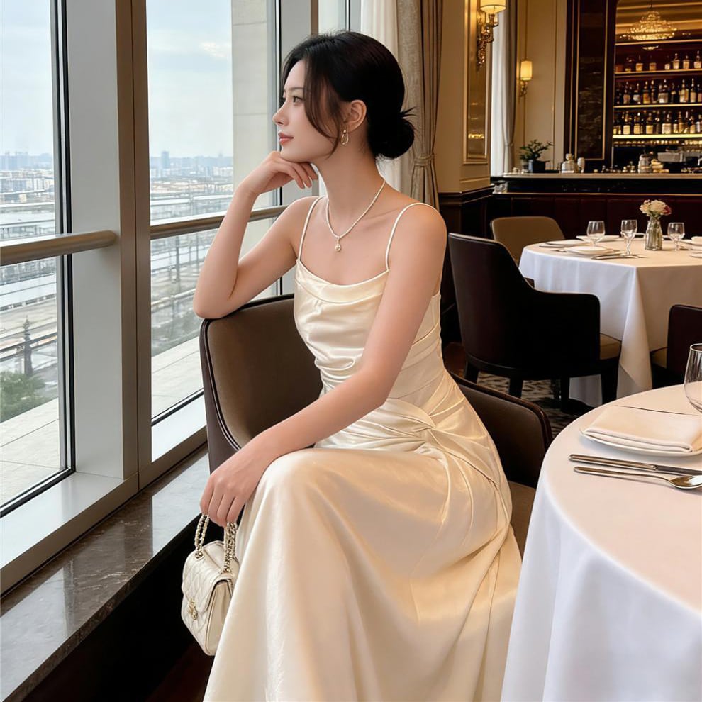 ロングドレス キャバドレス セクシー フレンチ サテン キャミソール ドレープ エレガント アシンメトリー JC2-JW6268GD751