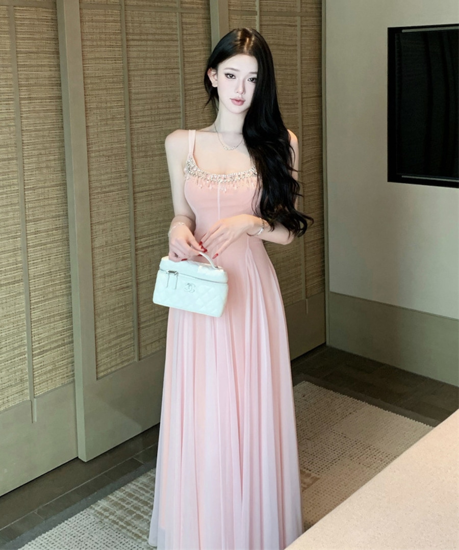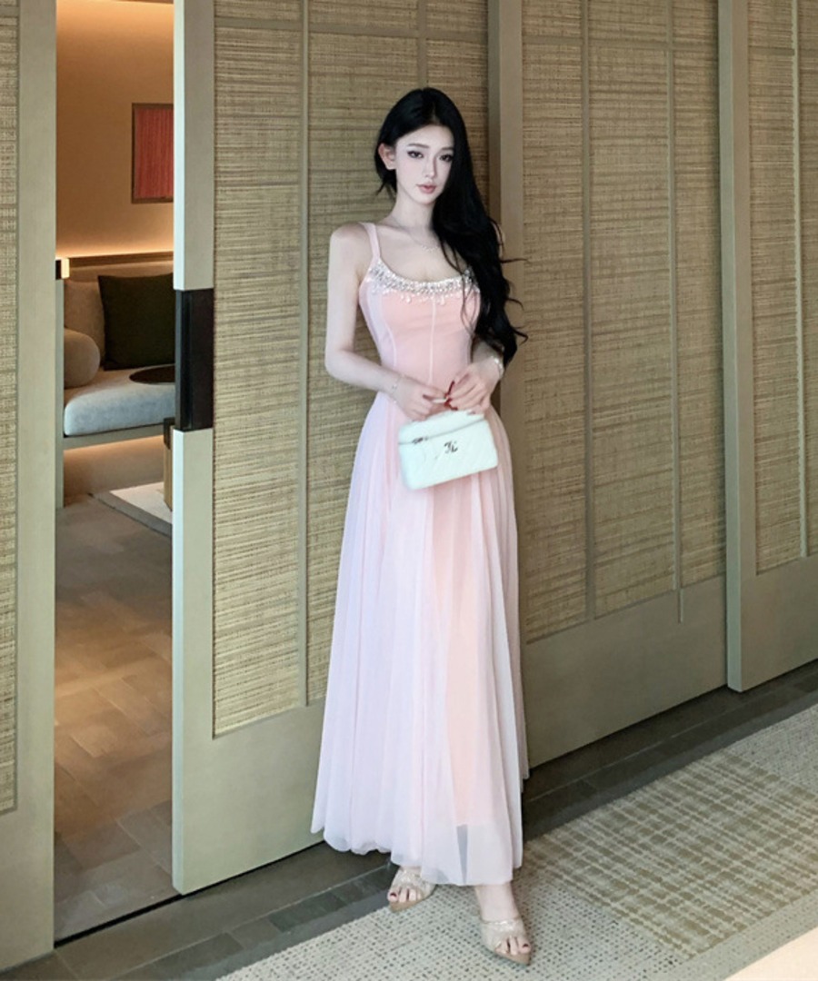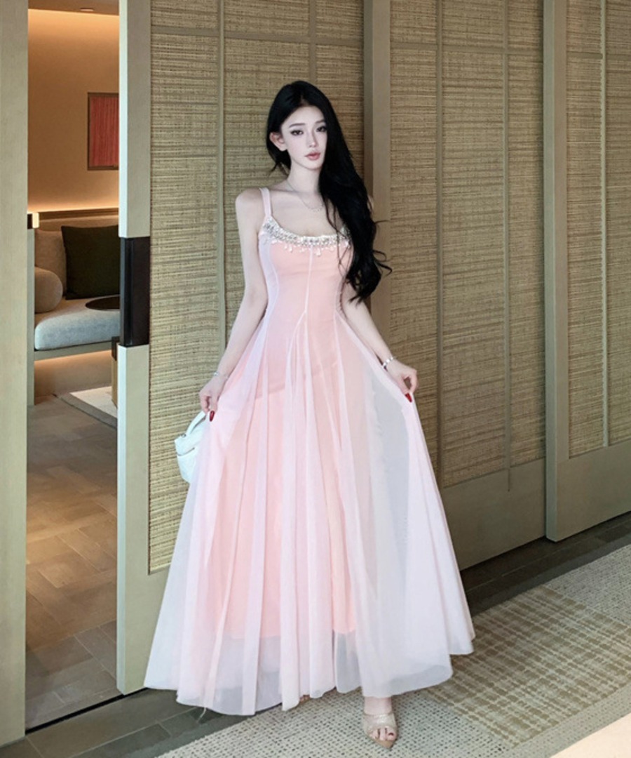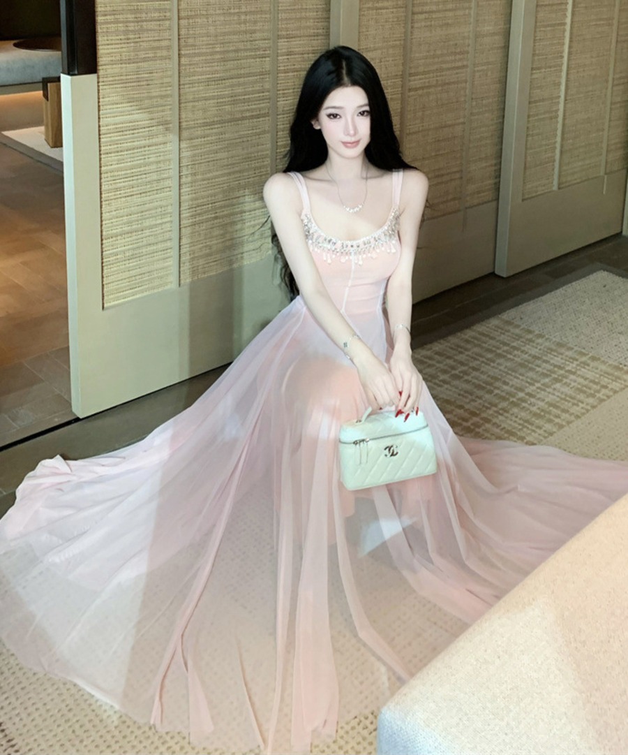 ロングドレス キャバドレス セクシー ラグジュアリー チュール ウエストマーク ウエストマーク キャミソールドレス JC2-XHY918345