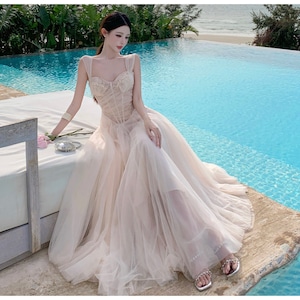 ロングドレス キャバドレス セクシー ガーリー フレンチスタイル チュール コルセット風 レース 刺繍 キャミソール フリル JC2-XHY915239
