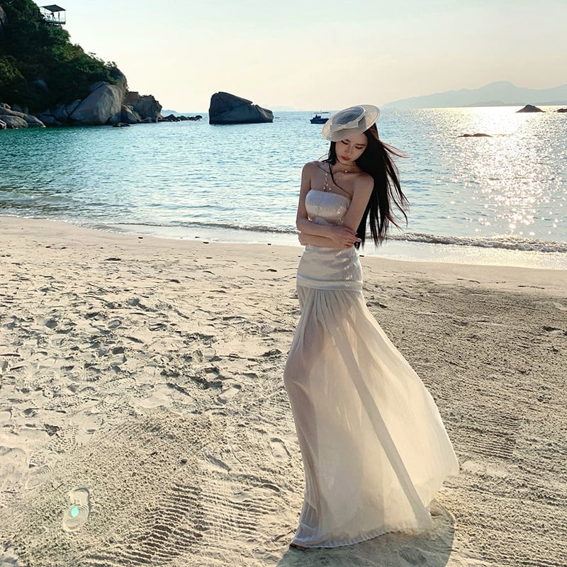 ロングドレス キャバドレス セクシー 上品 チュール ベアトップ スパンコール 清楚系 JC2-XHY919910
