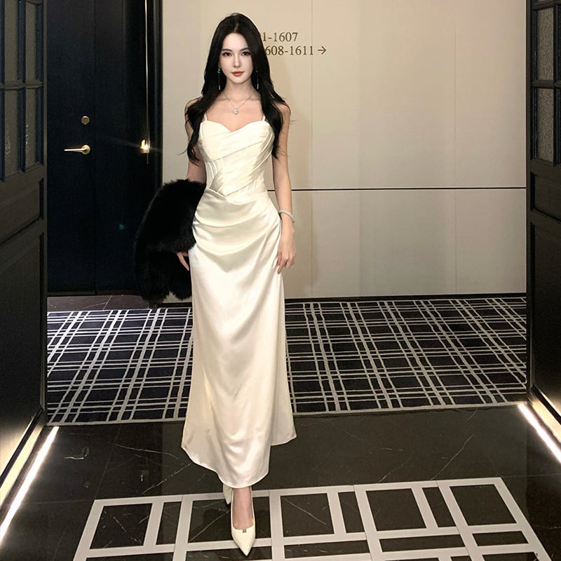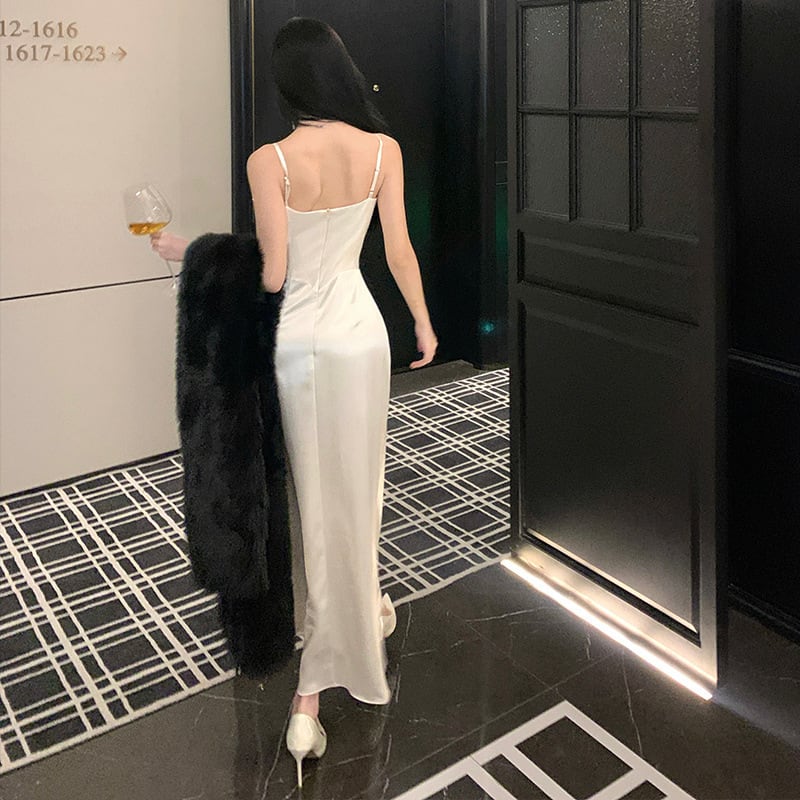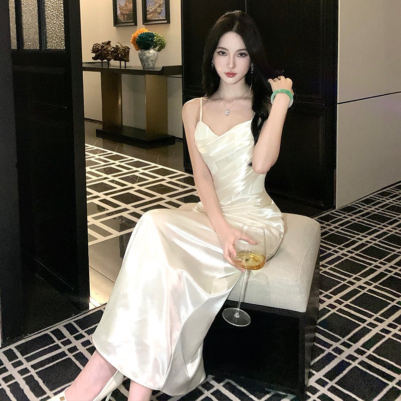 ロングドレス キャバドレス セクシー 上品 フレンチ サテン キャミワンピ ラメ マーメイドライン パーティー JC2-XHY919892