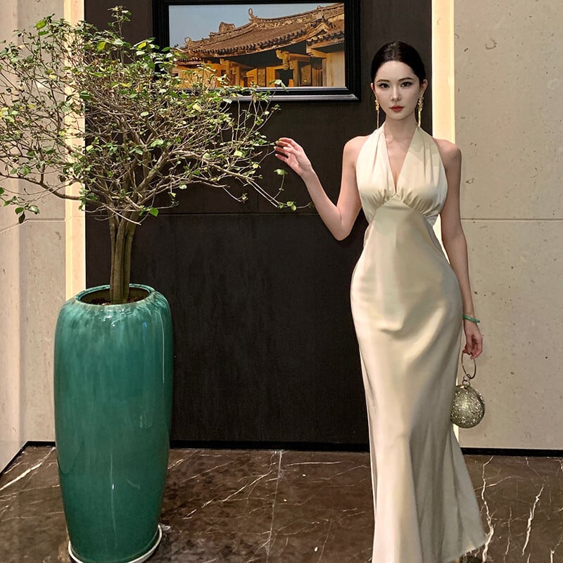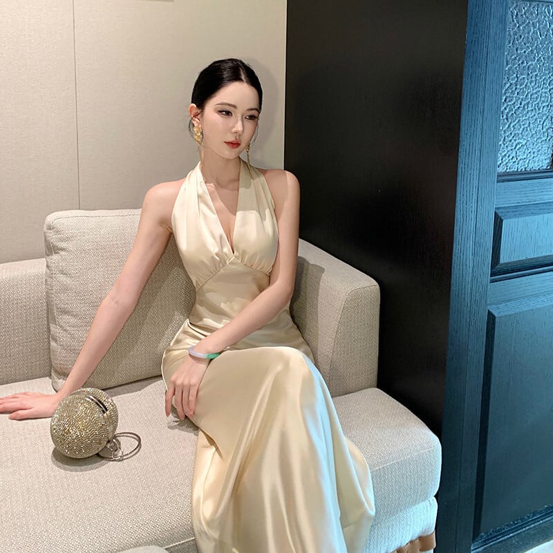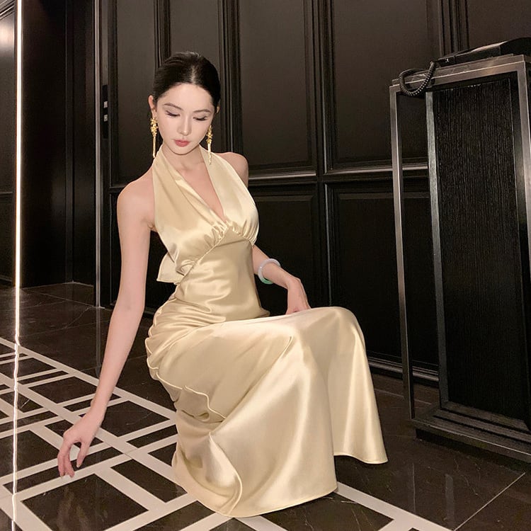 ロングドレス キャバドレス セクシー サテン ホルターネック 背中見せ フィット感 パーティー JC2-JW7026DSD260
