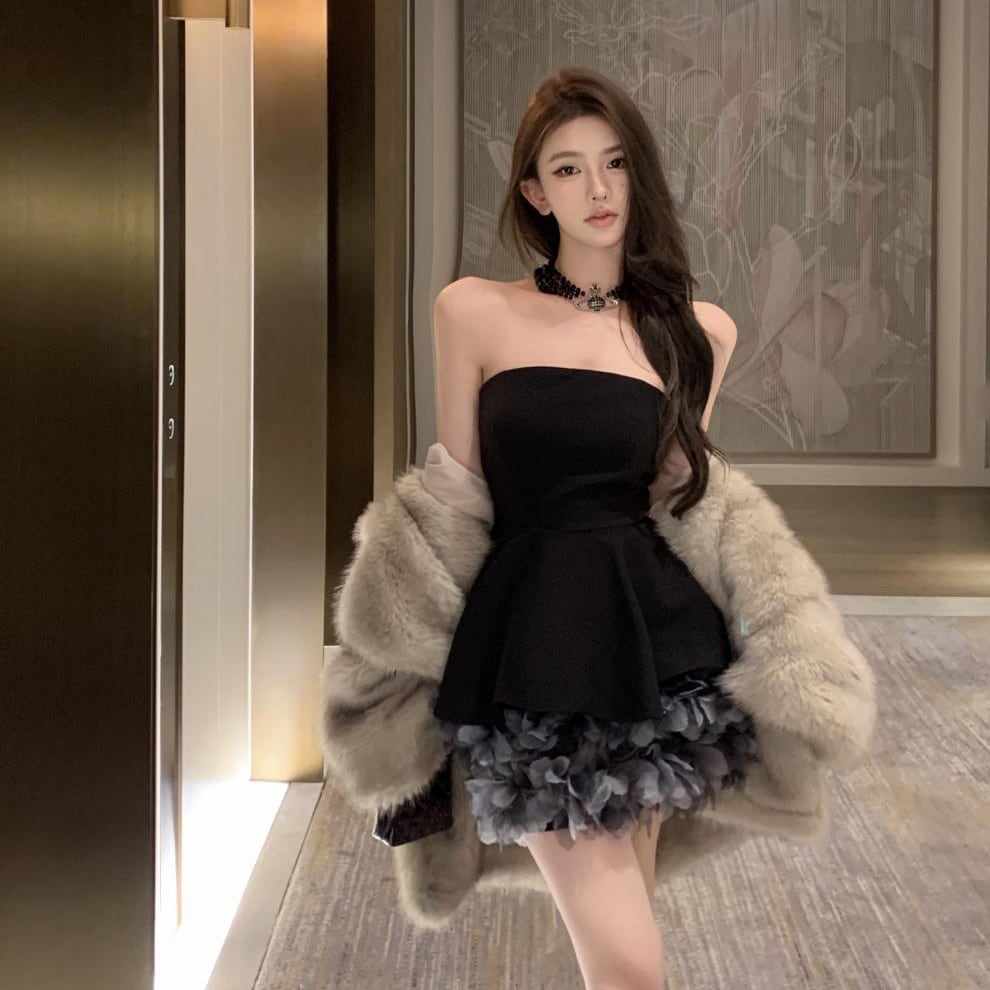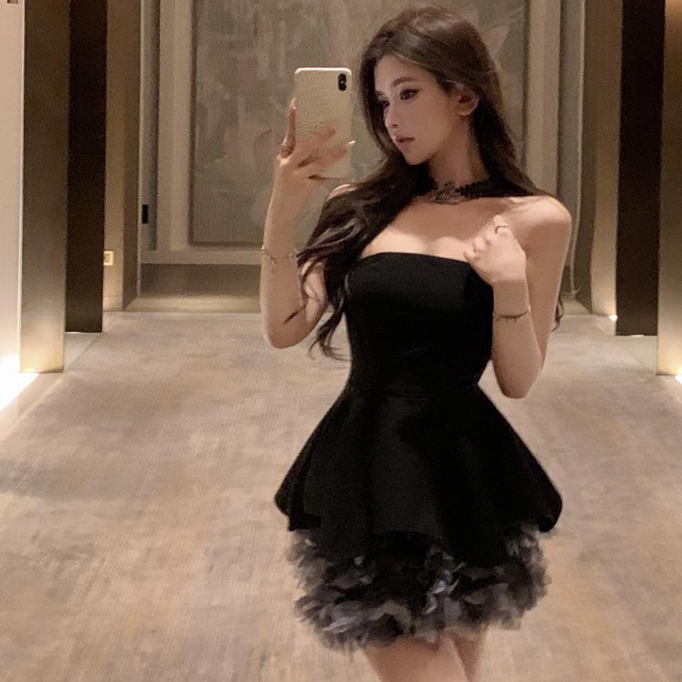 ミニドレス キャバドレス セクシー フレンチ フラワーモチーフ ベアトップ 上品 ボリュームスカート JC2-XHY918088