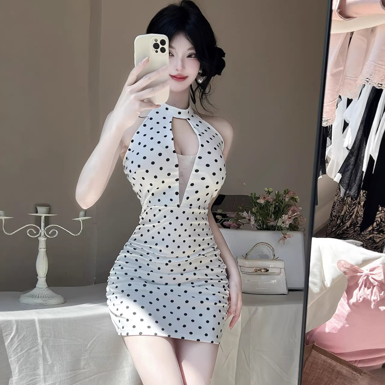 【3色】ミニドレス キャバドレス セクシー ドット柄 カットアウト 肩見せ クラブ 指名 JC2-DD6352