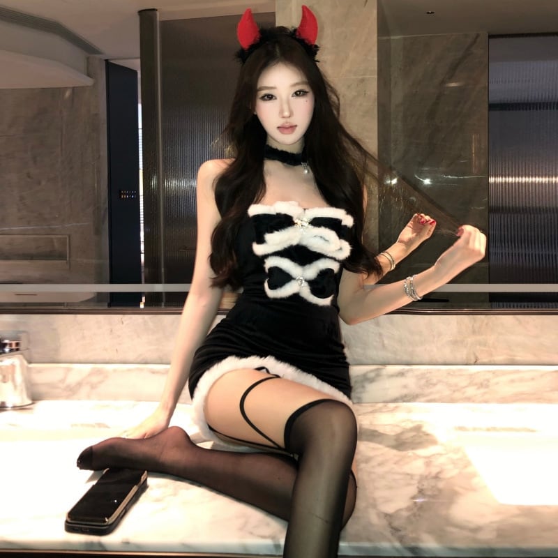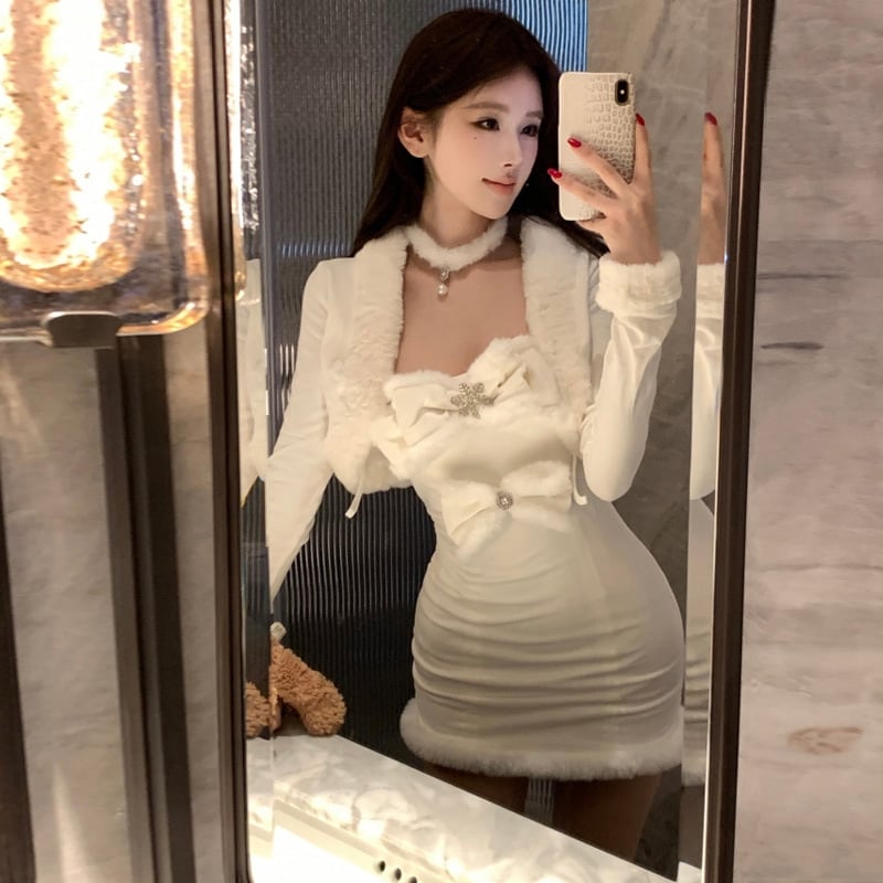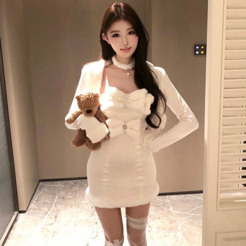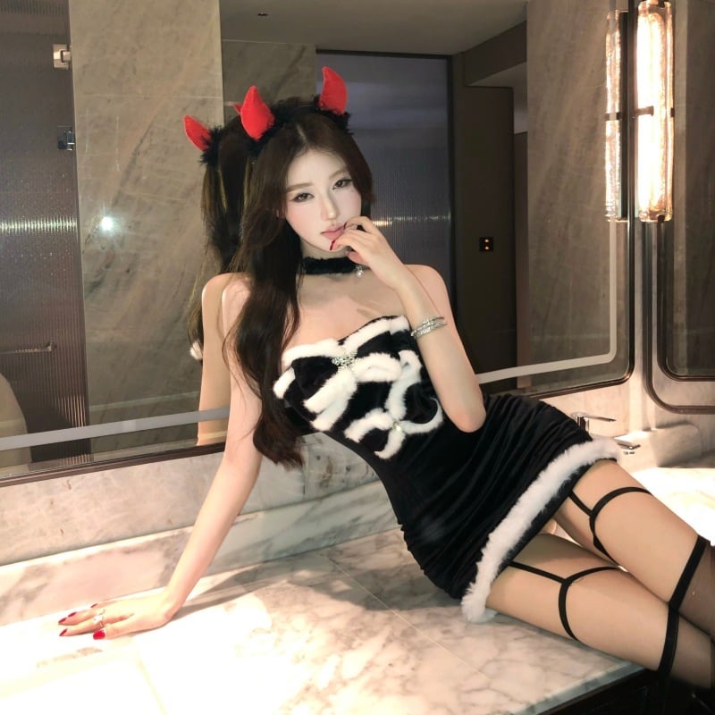 【2色】ミニドレス キャバドレス セクシー ベルベット ベアトップ タイト フェザー リボン付き クラブ JC2-WDS5458