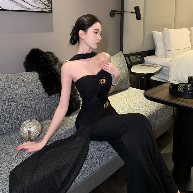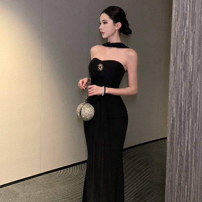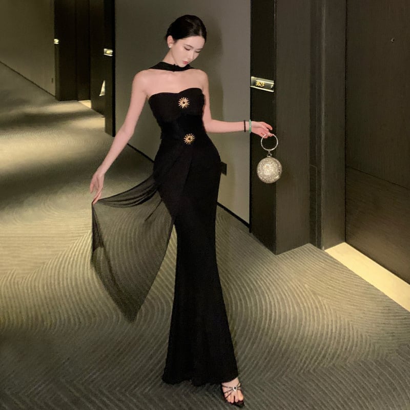 ロングドレス キャバドレス セクシー カットアウト ホルターネック ボディライン ギャル感 ウエストマーク パーティー JC2-XHY913265