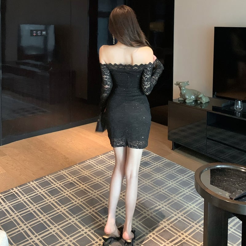 ミニドレス キャバドレス セクシー スパンコール レース オフショルダー ボディライン JC2-WDS5308