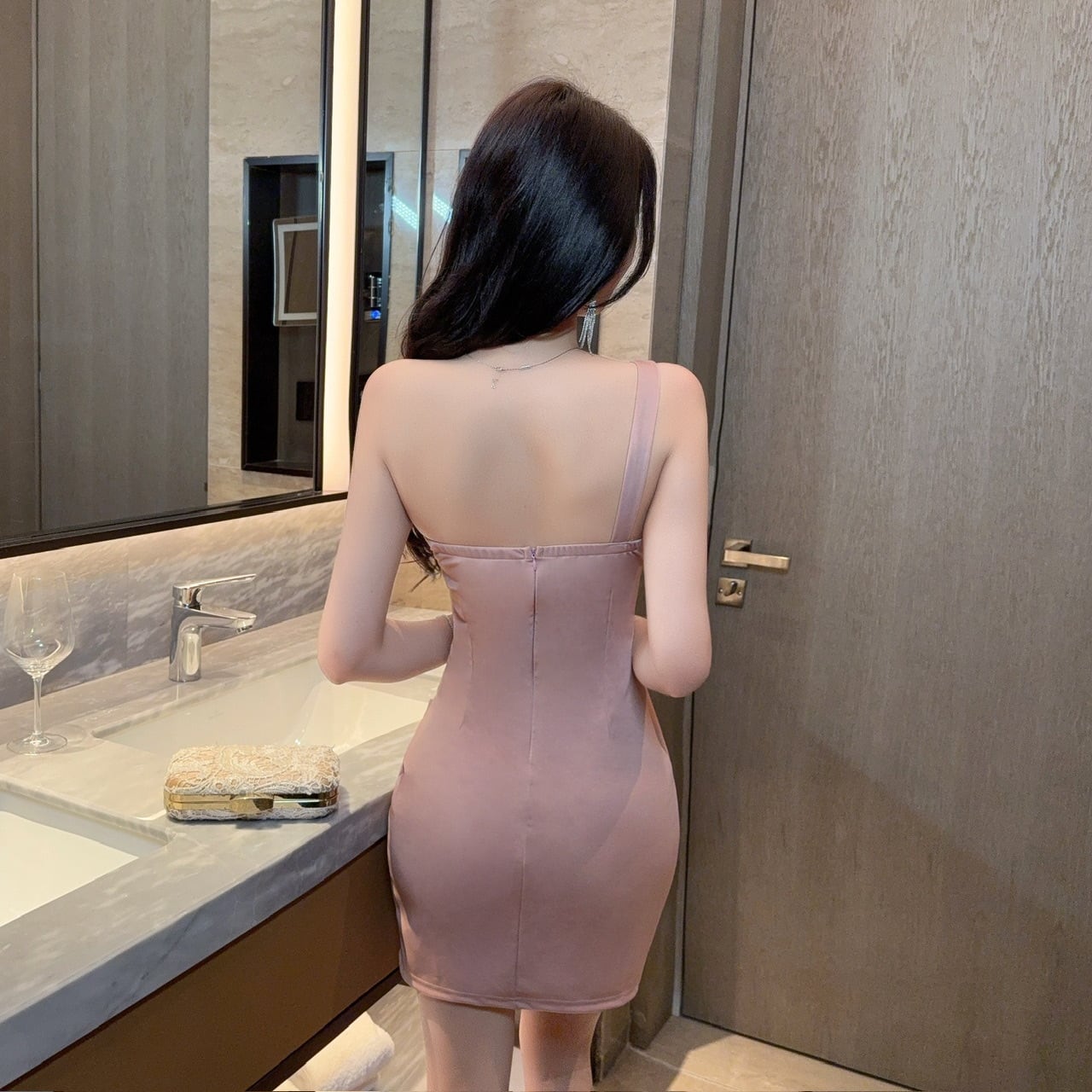 【4色】ミニドレス キャバドレス セクシー ワンショルダー ギャザー 切り替えデザイン ボディコン クラブ 指名 JC2-DD6396