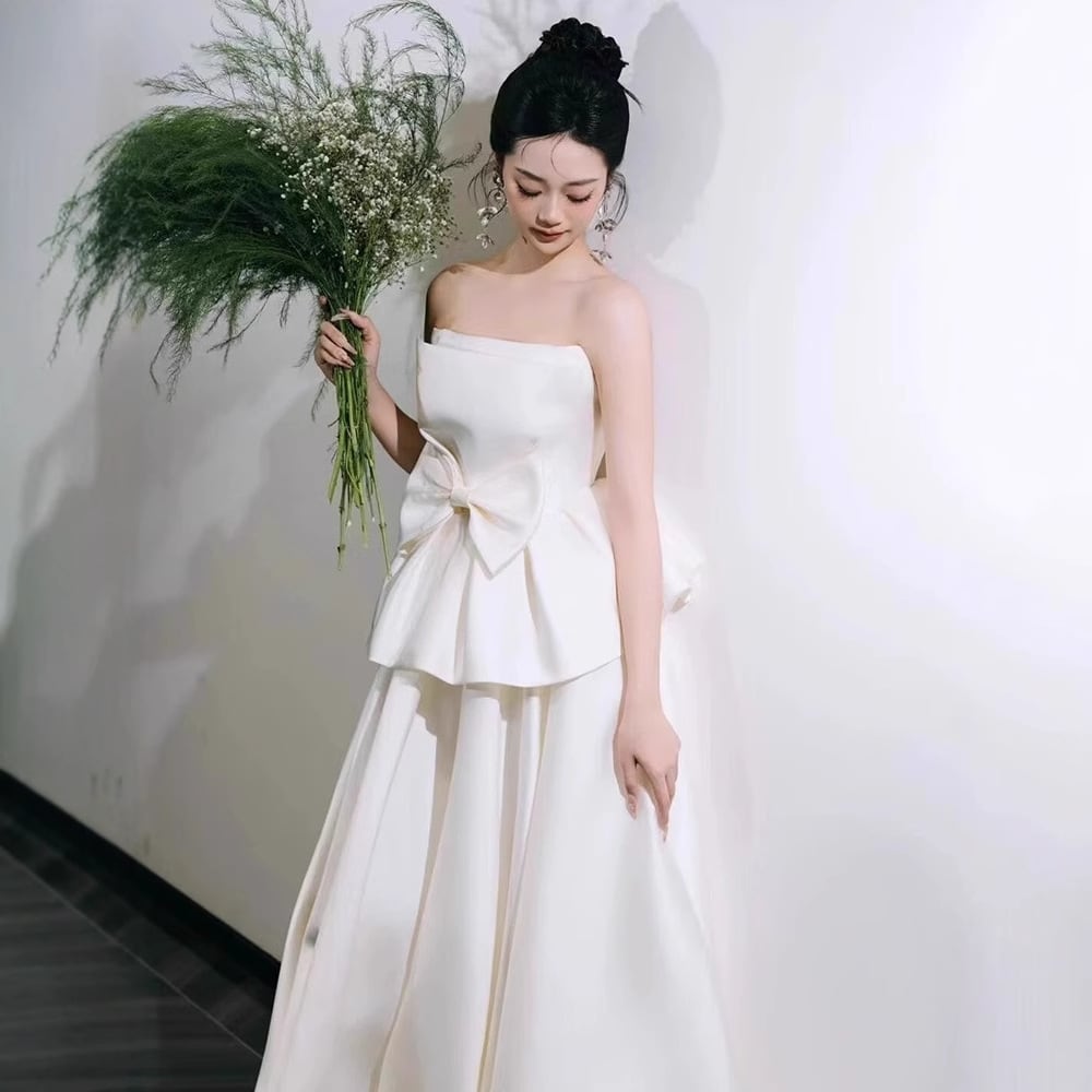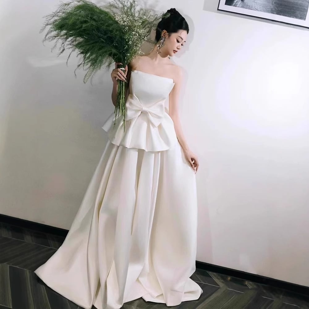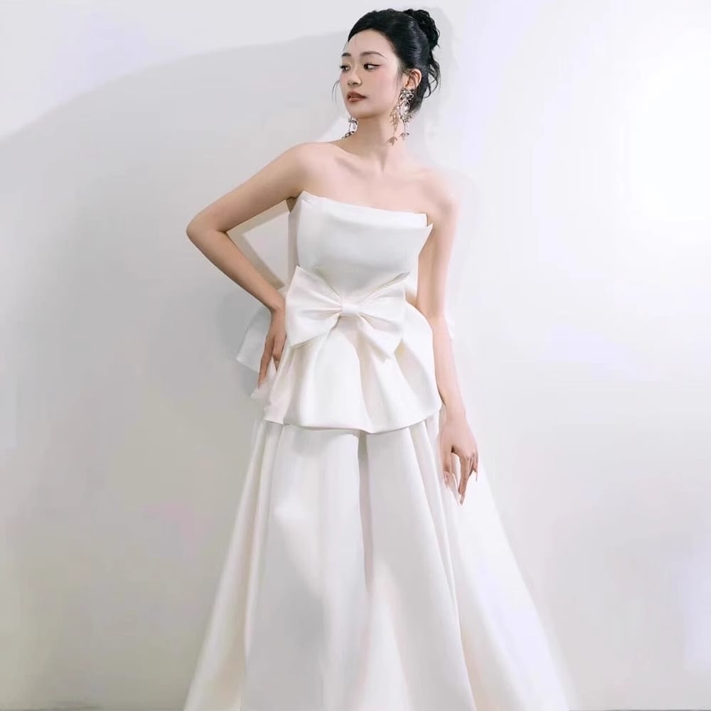 ロングドレス キャバドレス パーティードレス ベアトップ ミニマル サテン 上品 リボンディテール エンゲージ バースデー パーティー JC2-JSXA669
