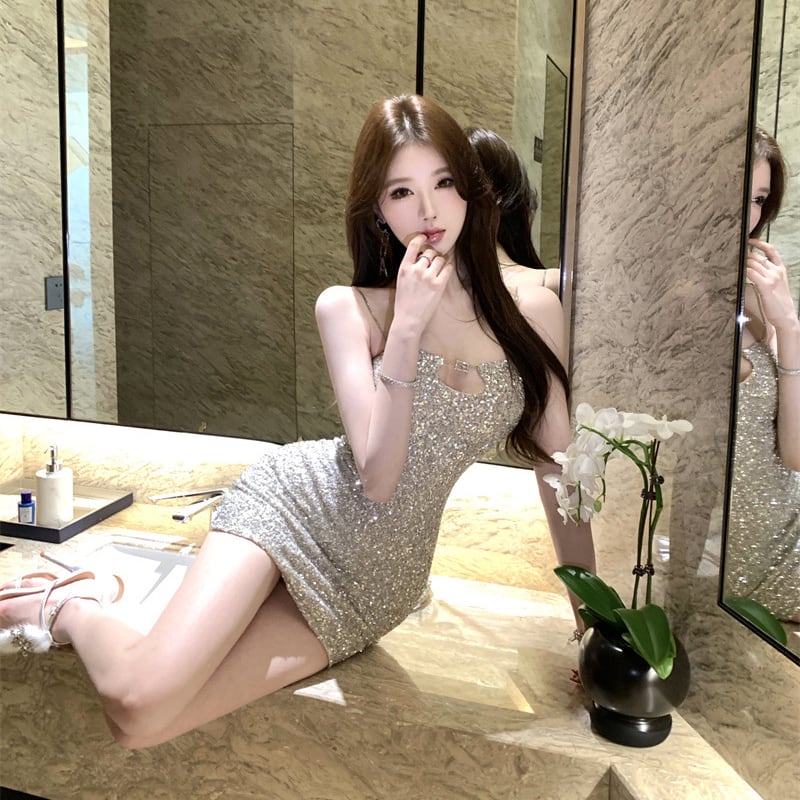 ミニドレス キャバドレス セクシー 上品 スパンコール キャミソール 着痩せ タイト バー クラブ JC2-ZED883478DXH502